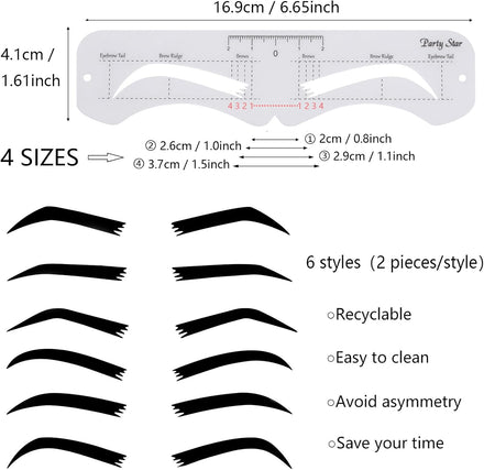 • Reusable eyebrow stencil with 6 different styles(a total of 12 Pieces).
