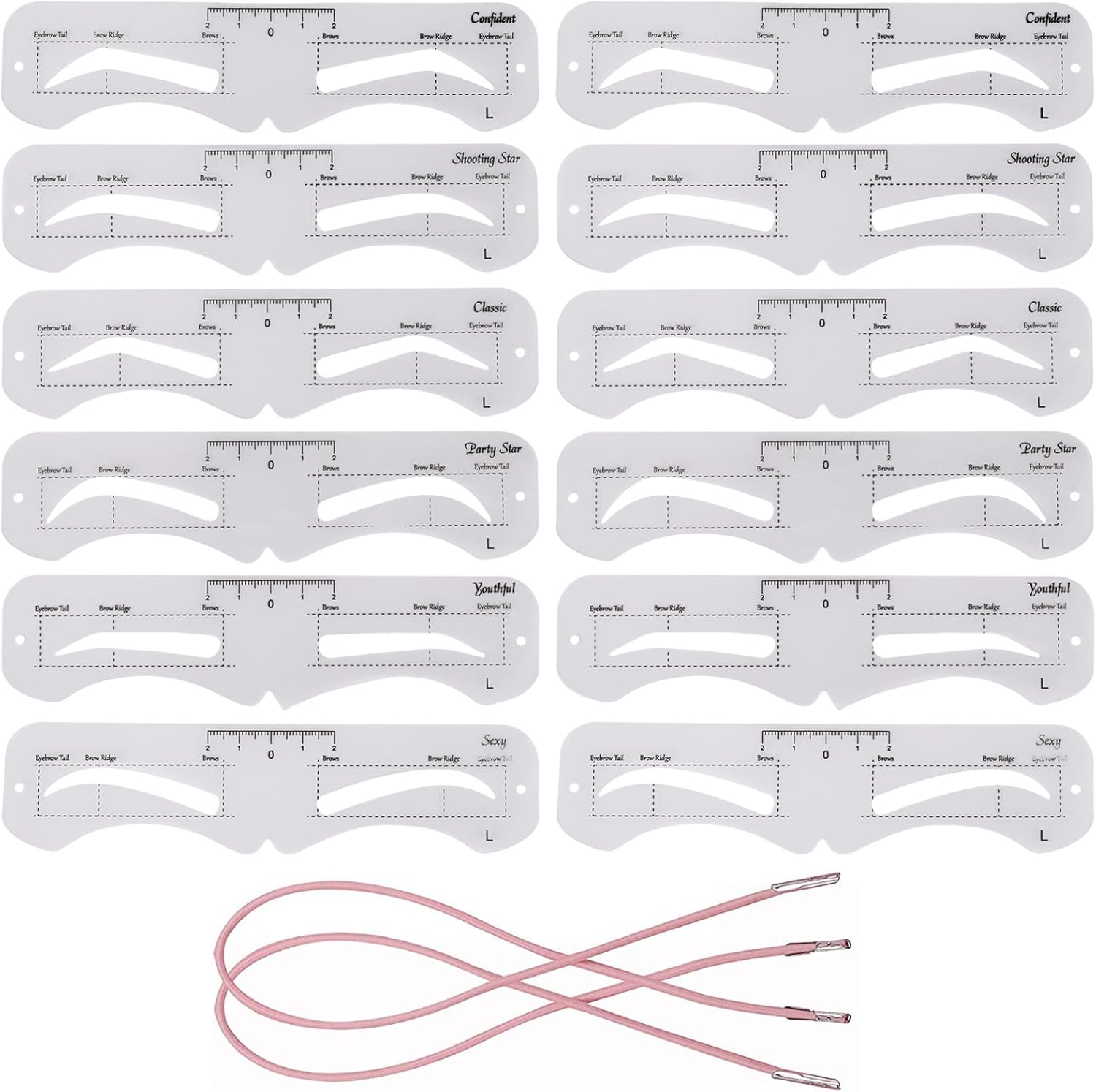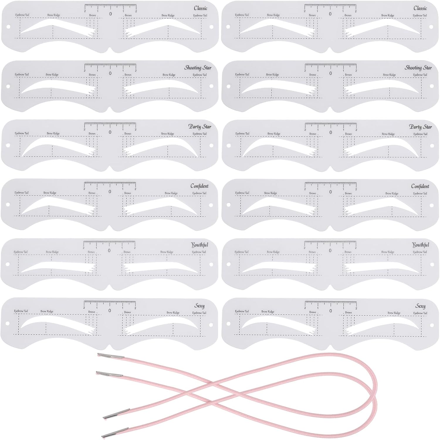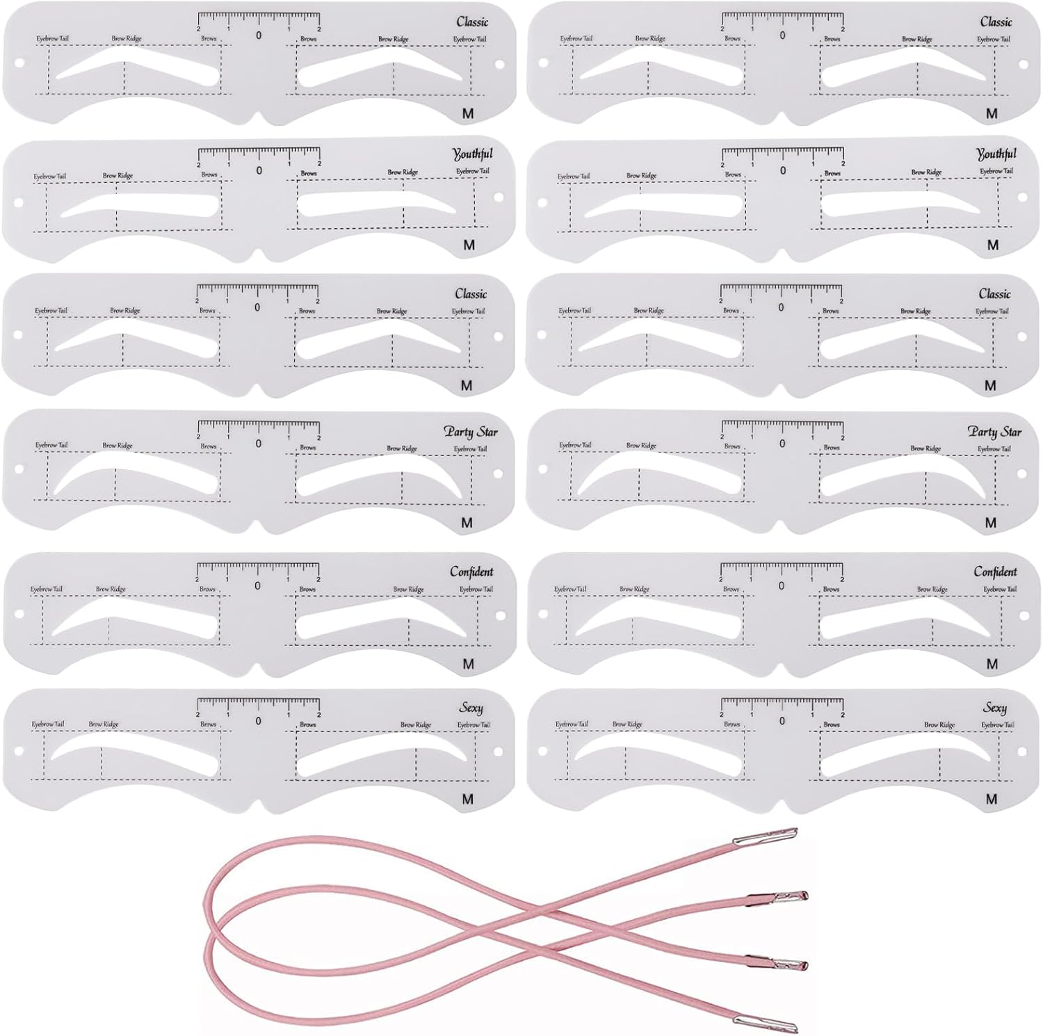 • Package includes 12 pieces eyebrow stencils and 2 fixed straps.