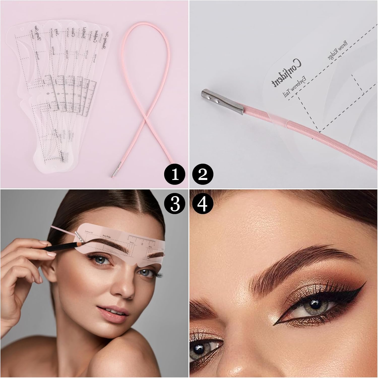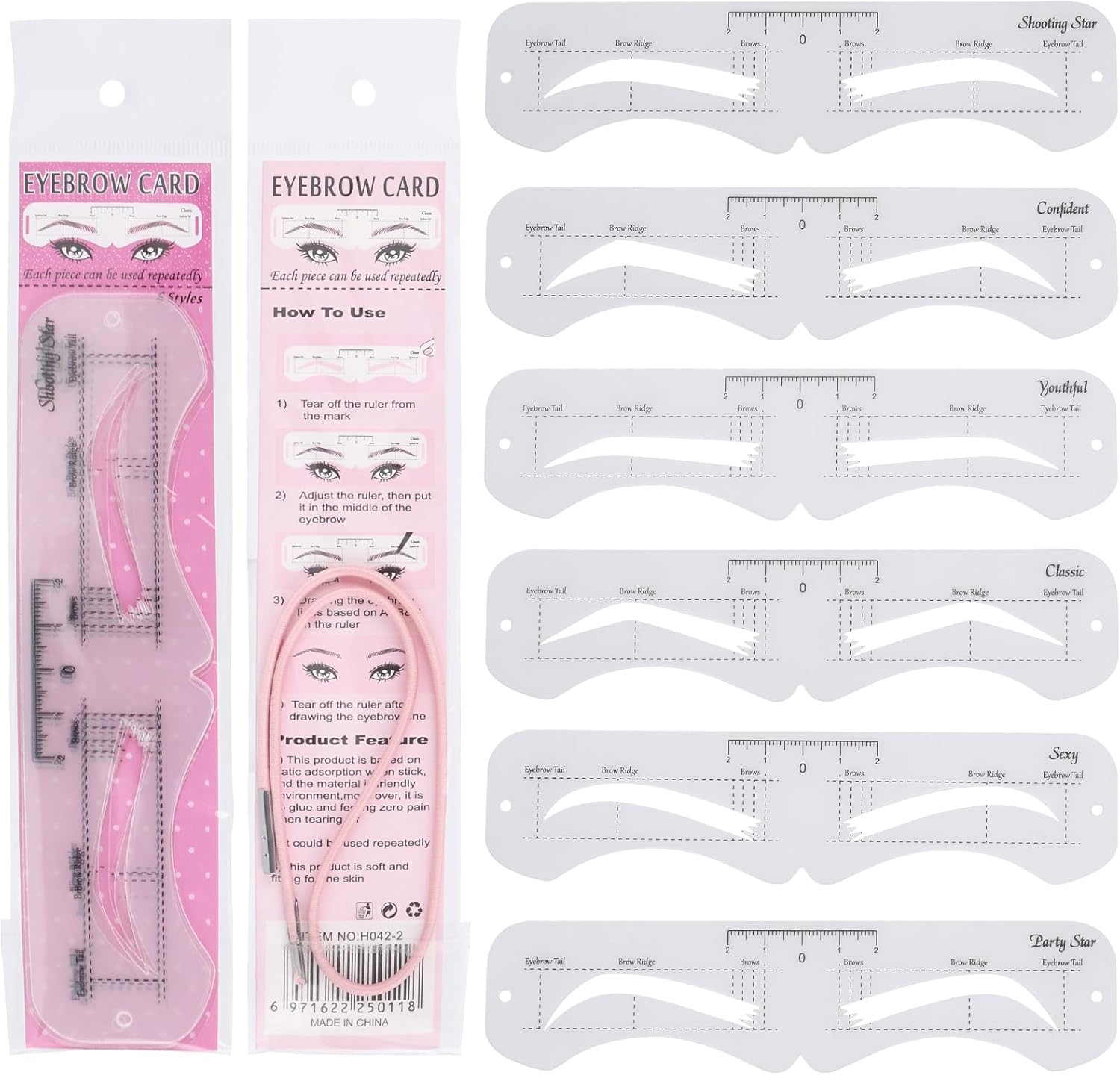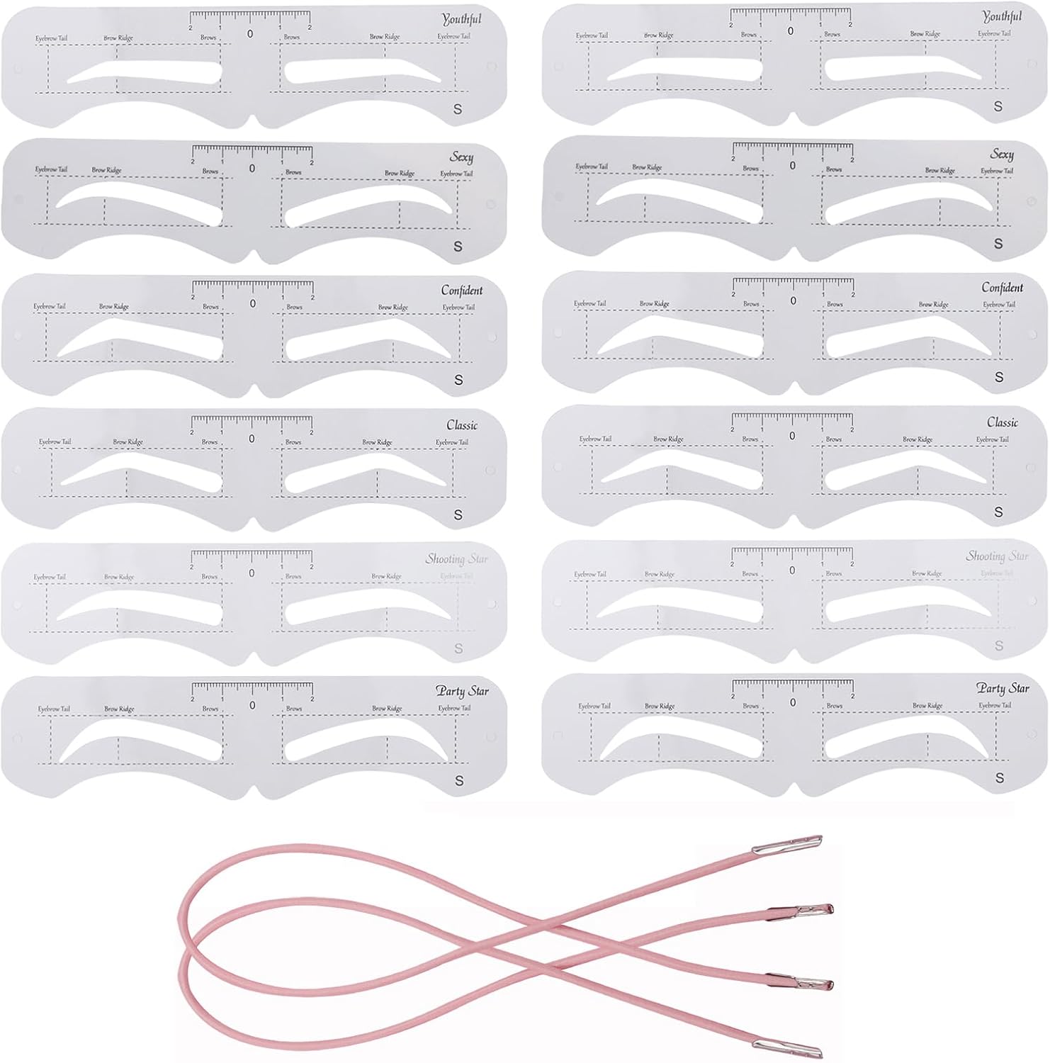 • Package includes 12 pieces eyebrow stencils and 2 fixed straps.