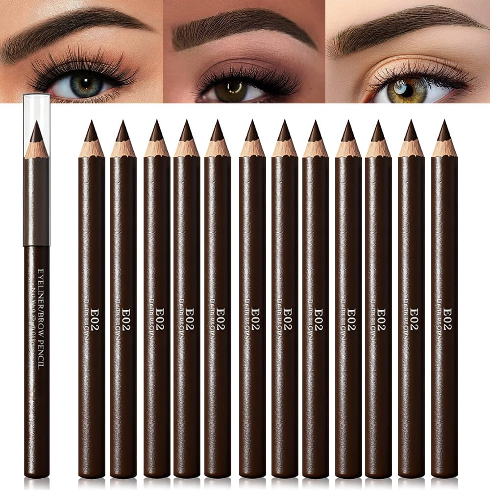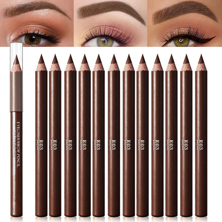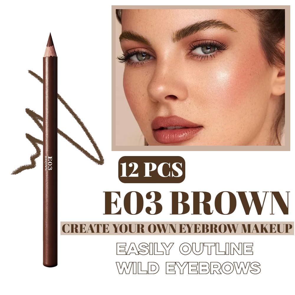 12Pcs Light Brown Eyebrow Pencils for Women, Wooden Hard-Core Eyebrow and Eyeliner Pencil, Long Lasting Waterproof and Sweat-Proof, Beginner Makeup Brow Pencil (Light Brown)