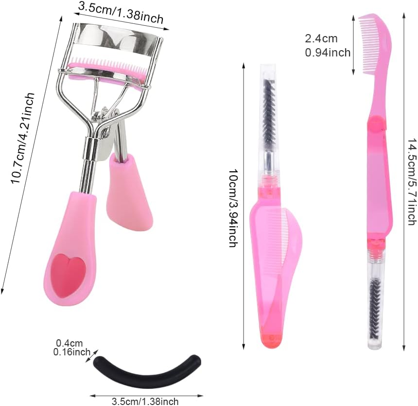 - 【3 in 1 Package】Our product contains 3 eyelash curlers, 3 eyelash comb or eyebrow comb, 8 replacement refill pads. Meet all your makeup needs!