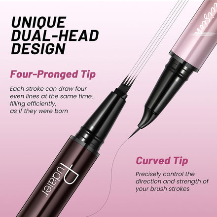 • 2-in-1 Eyebrow and Eyeliner Pencil: This dual-ended eyebrow pencil has 4 fork tips on one end, which can easily outline a natural 3D eyebrow, and the other end has a curved eyeliner pencil, which can perfectly fit the eye shape and draw a smooth, delicate eyeliner;