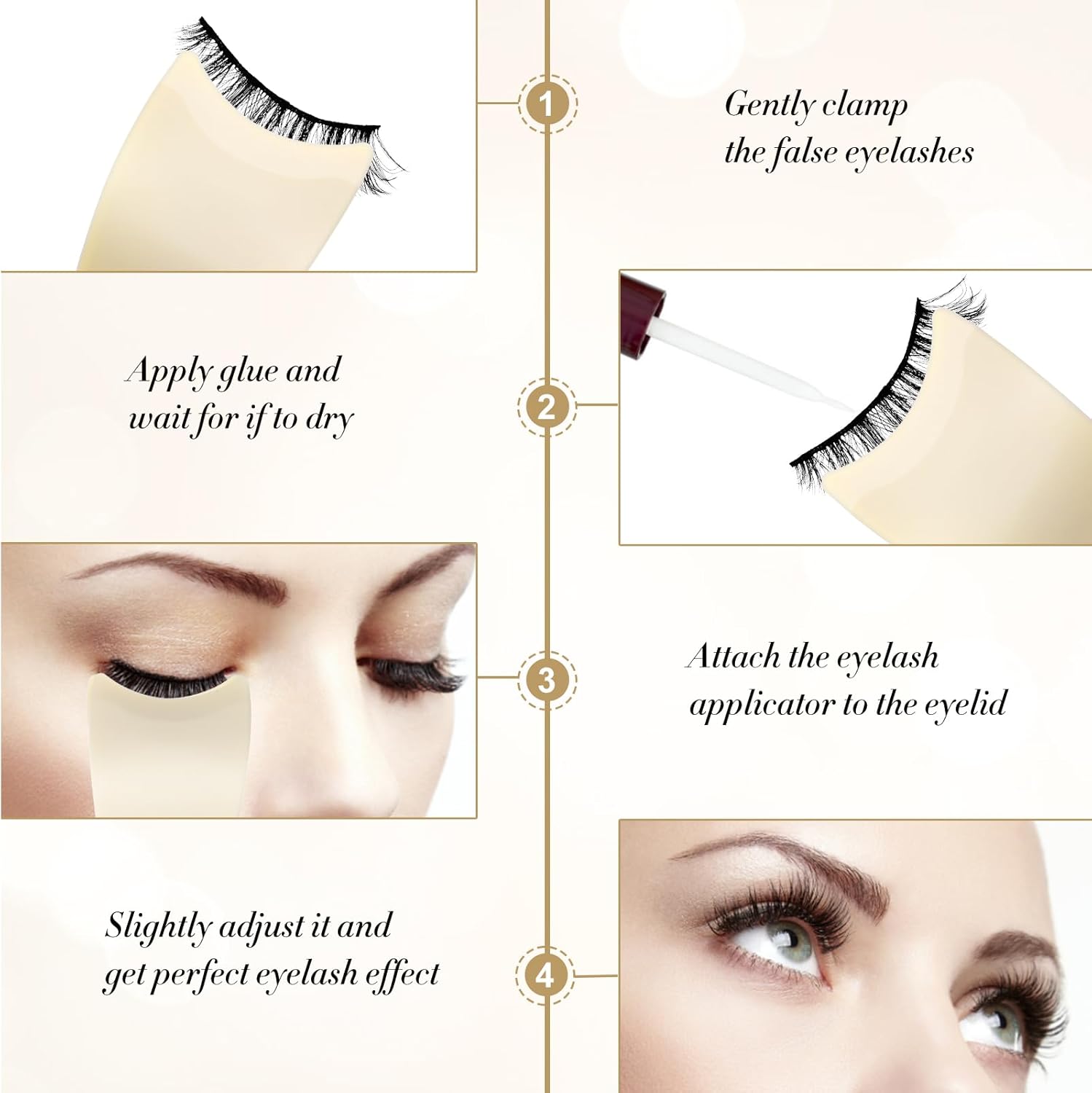 - [Multi-scene application]: The strip lash applicator as the makeup artist: The portable eyelash tool is suitable for daily makeup, wedding makeup, and photography styling. It is a cost-effective choice for beauty enthusiasts and makeup studios.