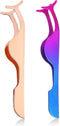 2 PCS False Eyelashes Applicator Curved Eyelash Tweezers Stainless Steel Remover Clip Tweezers Professional Eyelash Extension Curlers for Lash Clusters Application Removal