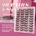 20 Pairs False Eyelashes 3D Faux Mink Lashes Natural Look Wispy Fake Eyelashes ALPHONSE 16-20MM Fluffier Volume Long Thick Lashes Pack 5 Styles Mixed