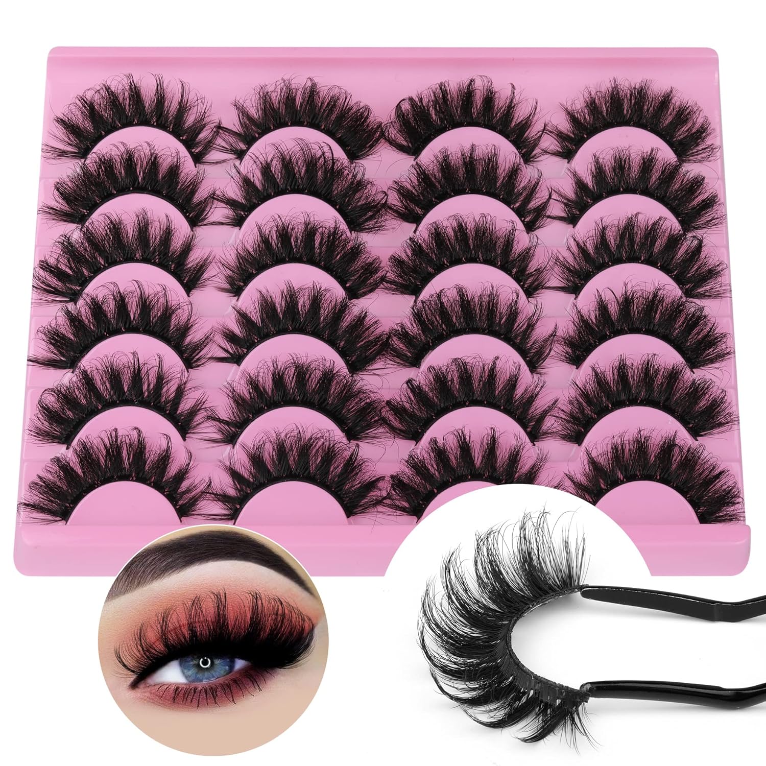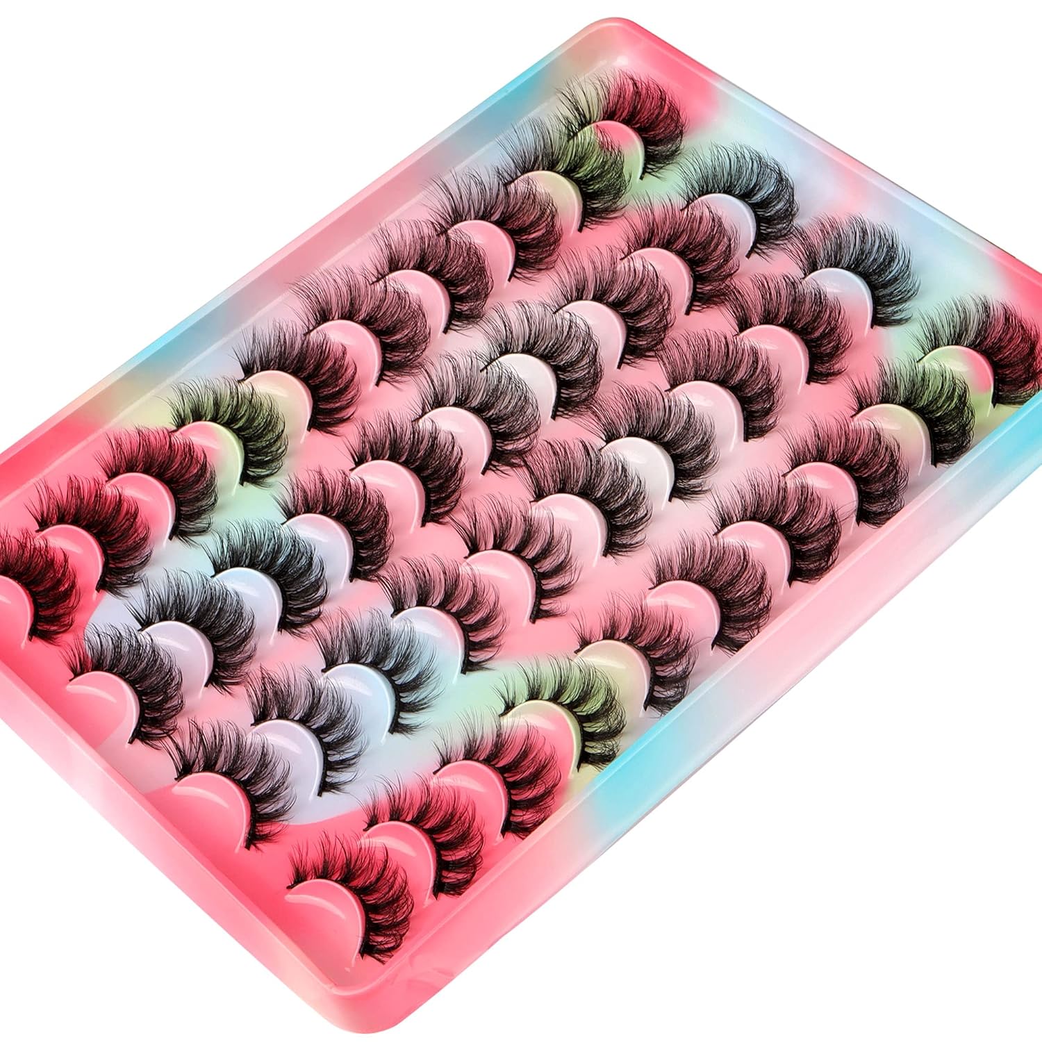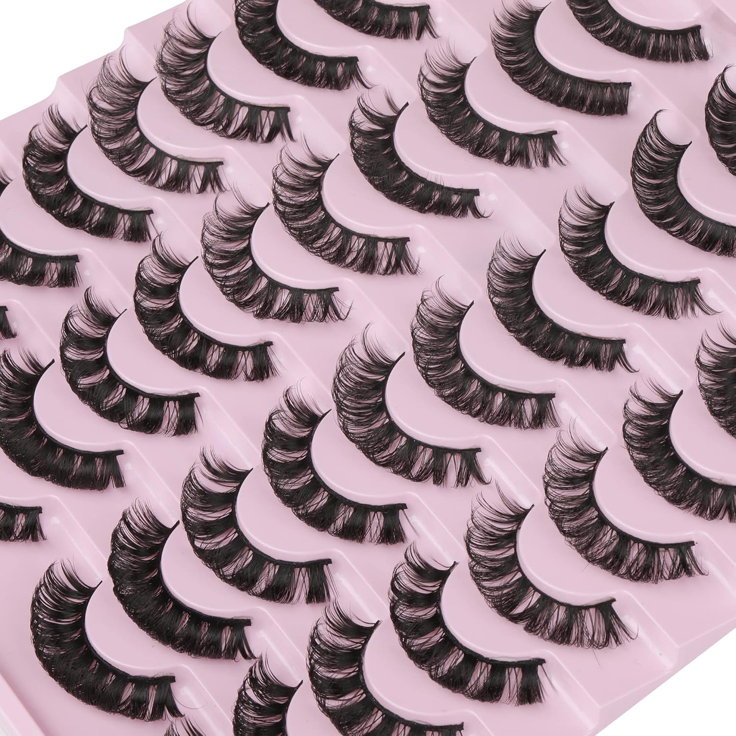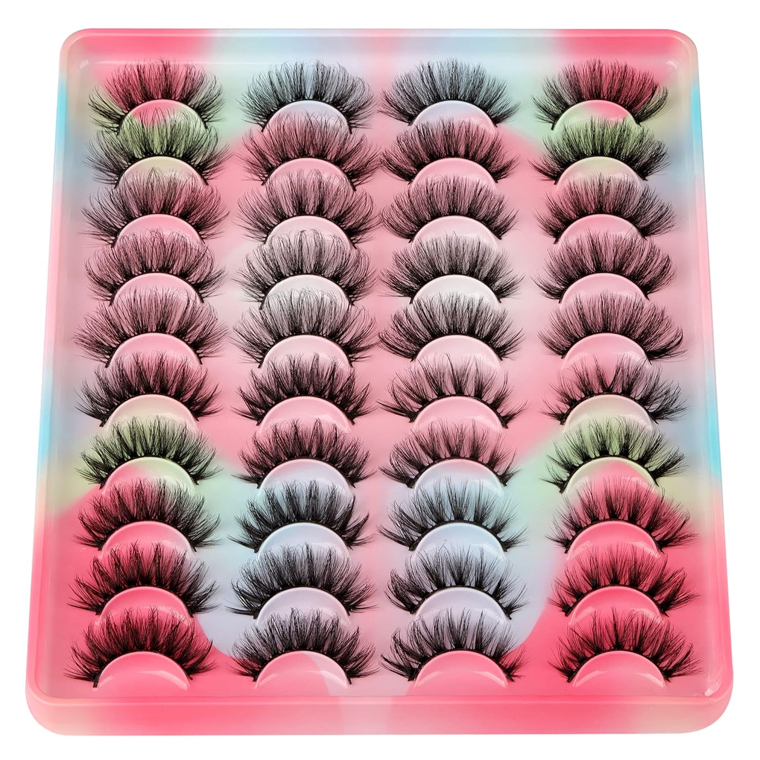 20 Pairs False Eyelashes Natural Fluffy Cat Eye Fake Eye Lashes 4 Styles Mixed Thick Wispy 5D Faux Mink Eyelashes Multipack