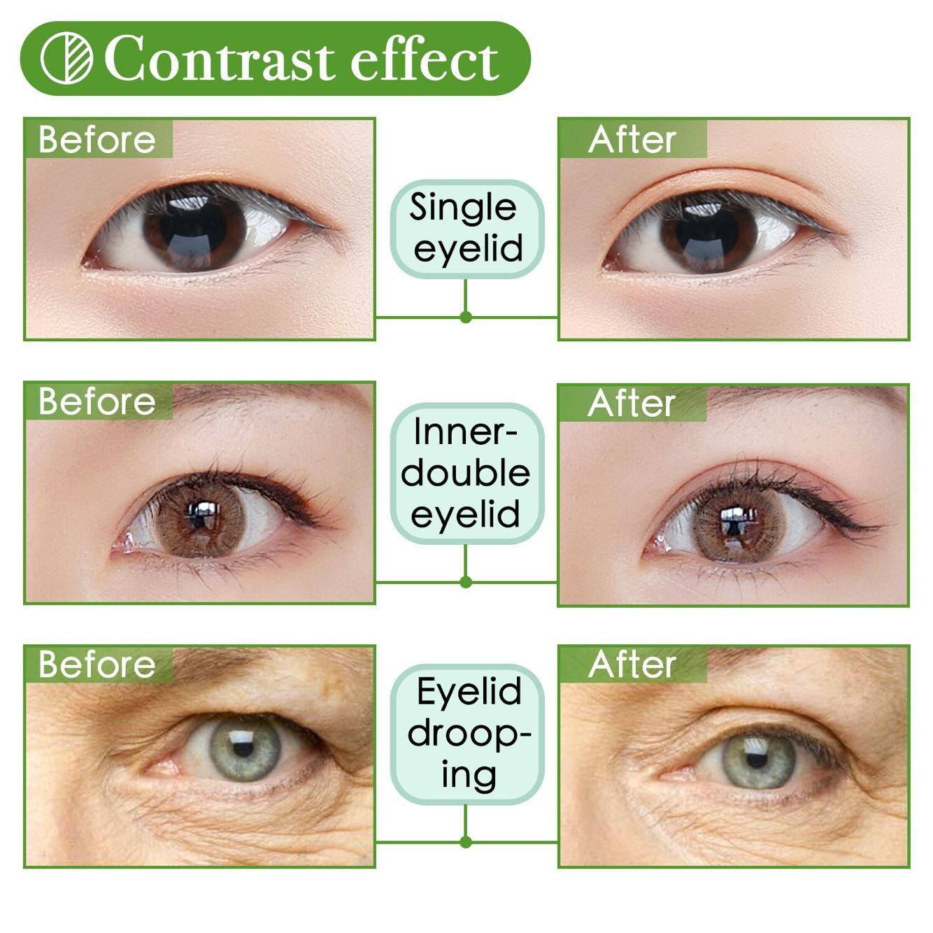 • 【Easy to use】 It only takes a few simple steps to easily obtain attractive double eyelids, using safe ingredients, works perfect as an instant eye lift surgery with no pain and no hurt. Please make sure your eyes are dry before use.