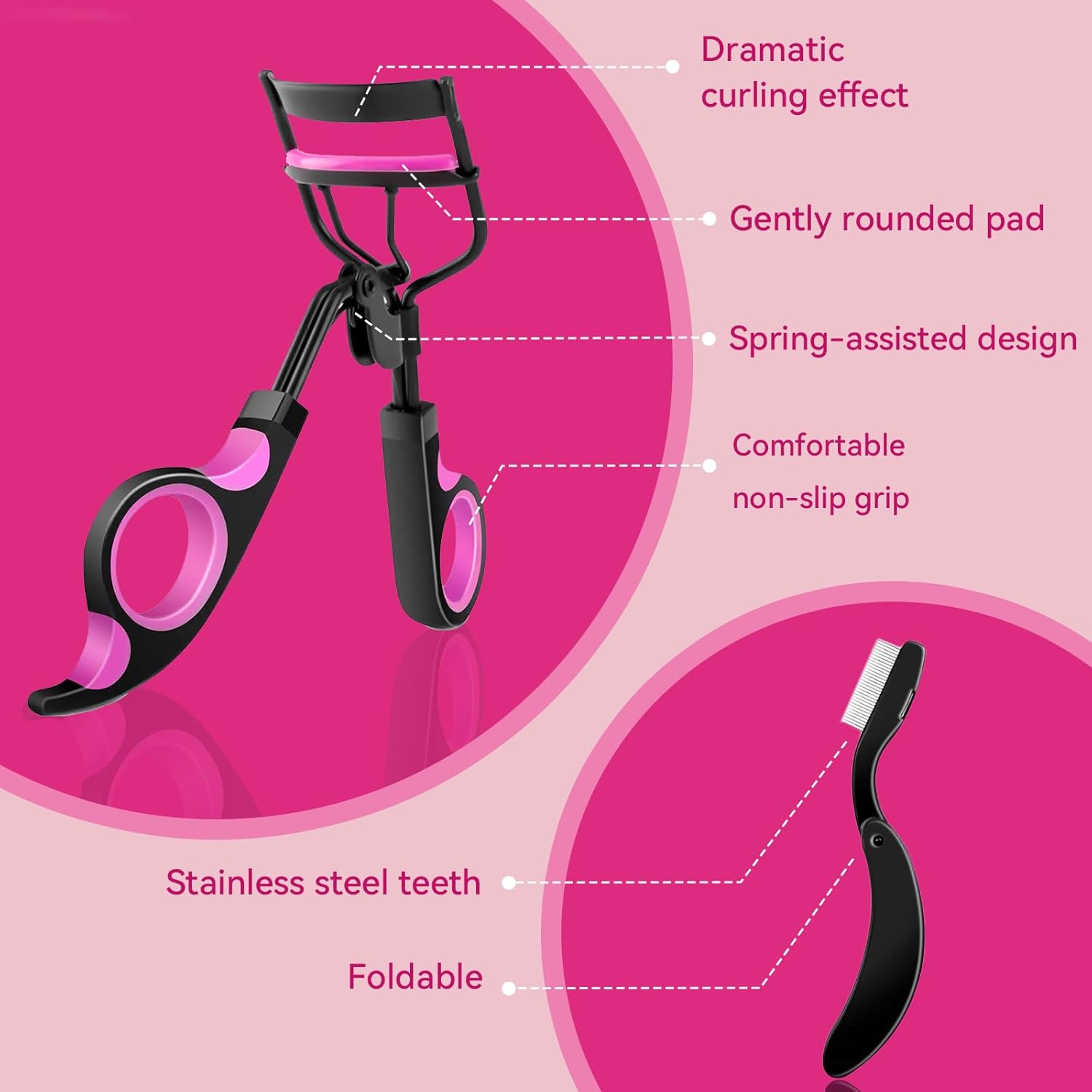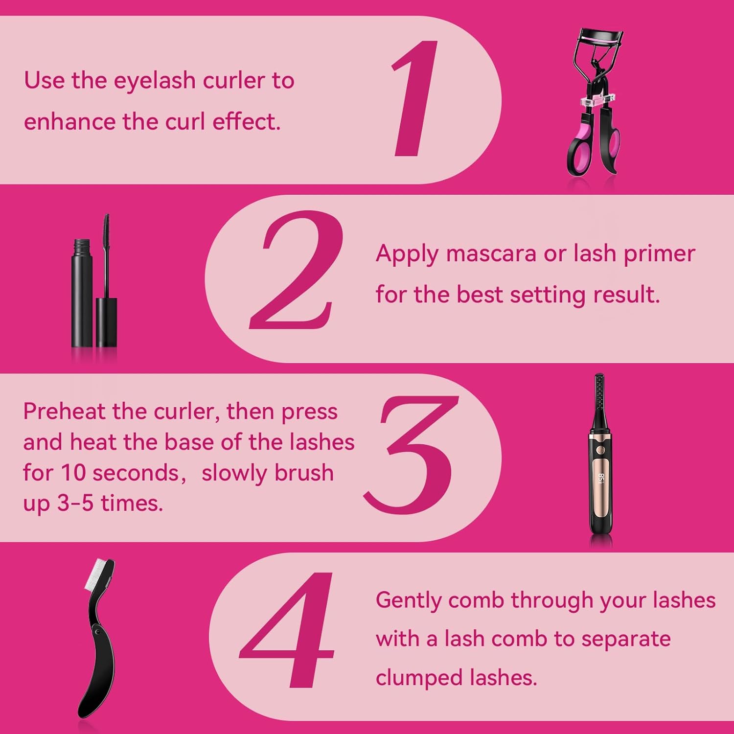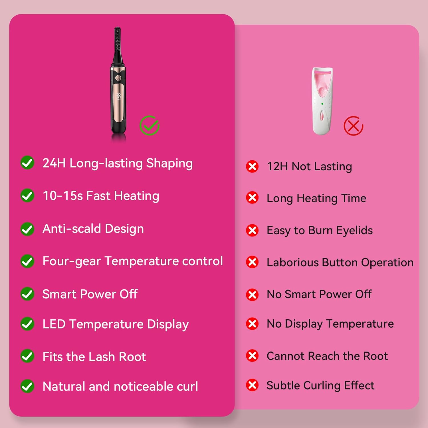 - SAFE & BEGINNER-FRIENDLY DESIGN - Anti-scald technology protects your eyelids, while the soft silicone pad and spring mechanism prevent pinching. The lash separator tool ensures natural, clump-free curls. Designed for easy, pain-free use, even for beginners! Perfect for all eye shapes and lash types.