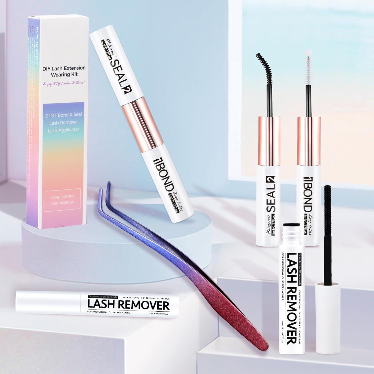 Package includes 1 pcs lash tweezers, 48 hours strong hold lash bond & seal and deep cleansing cluster lash remover. Solution for Lash Application and Removal: lash bond & seal and deep cleansing cluster lash removal.
