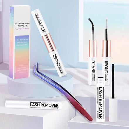 3 PCS Lash Kit Bond and Seal with Tweezers Remover Kit, DIY Eyelash Glue and Lash Applicator Tool Cluster Glue Remover Fast Removal with No Residue