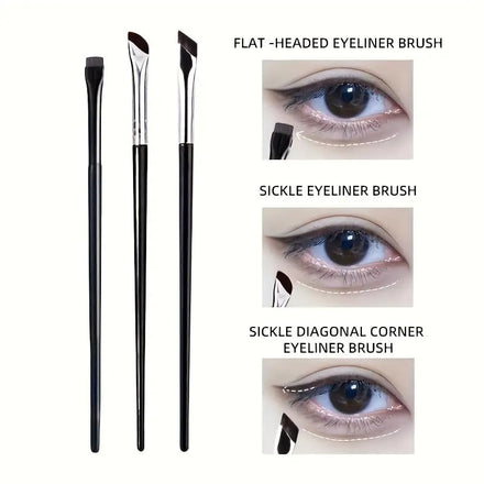 3-Piece Eyeliner Brush Set – Precision Makeup Brushes for Liquid, Gel & Cream Liners | Ultra-Fine Synthetic Bristles & Non-Slip Handles for Defined Eye Looks