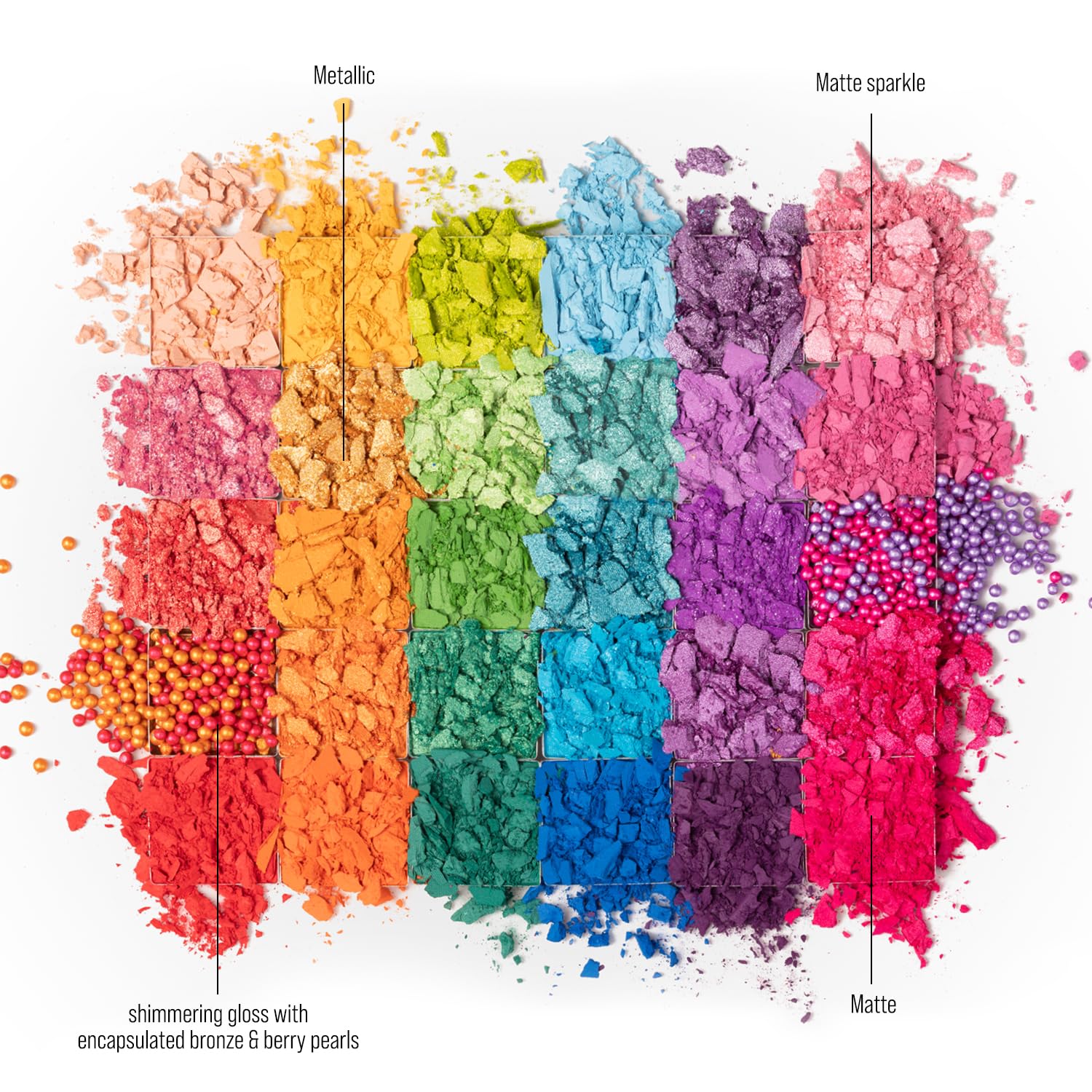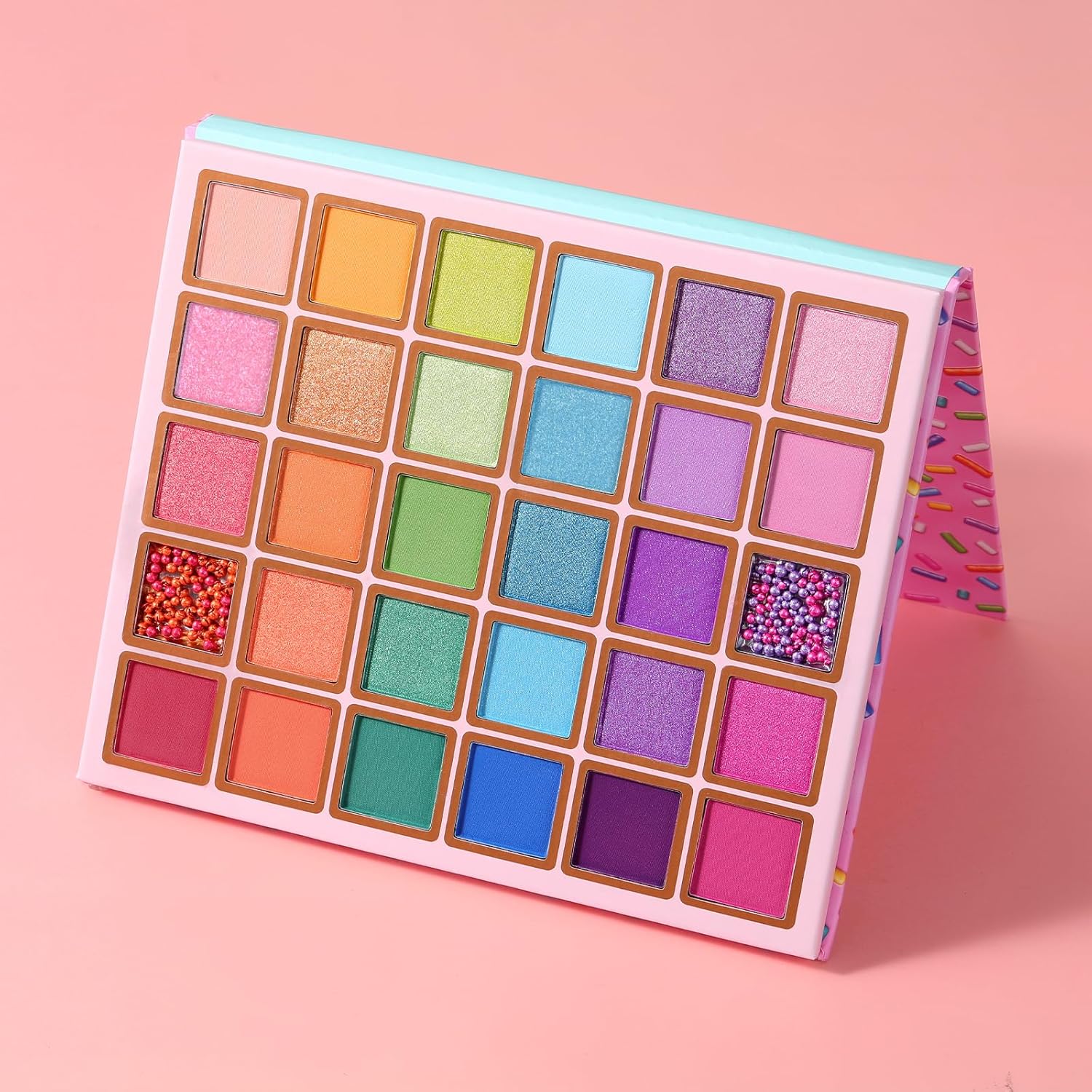 • Eyeshadow Palette: 30 rainbow colors includes 11 silky mattes, 5 matte with sparkle, 10 shiny metallic, 2 starry glitter, 2 shimmer balls.