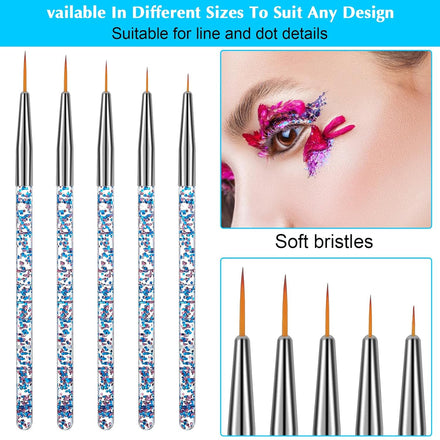 • Complete Set: Includes 5 versatile brushes for eyeliner and nail art, each in different sizes (5mm, 7mm, 9mm, 11mm, 15mm) to meet all your creative needs.