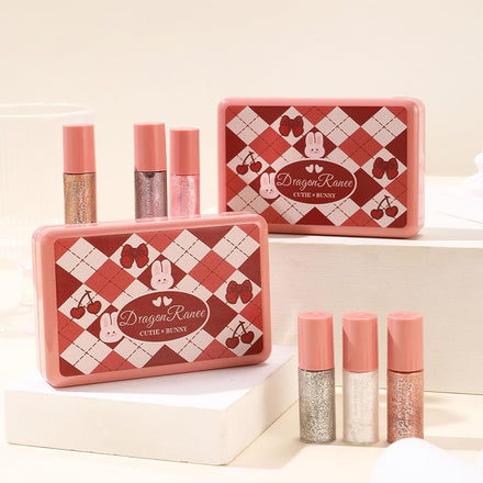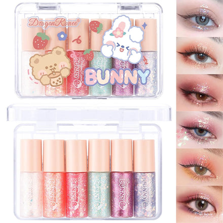 6 Pcs Liquid Glitter Eyeshadow Set Colorful Eyeliner with Long-Lasting and Waterproof Shinning Eye Shadow Gift for Women Eye Makeup (Cherry Rabbit)