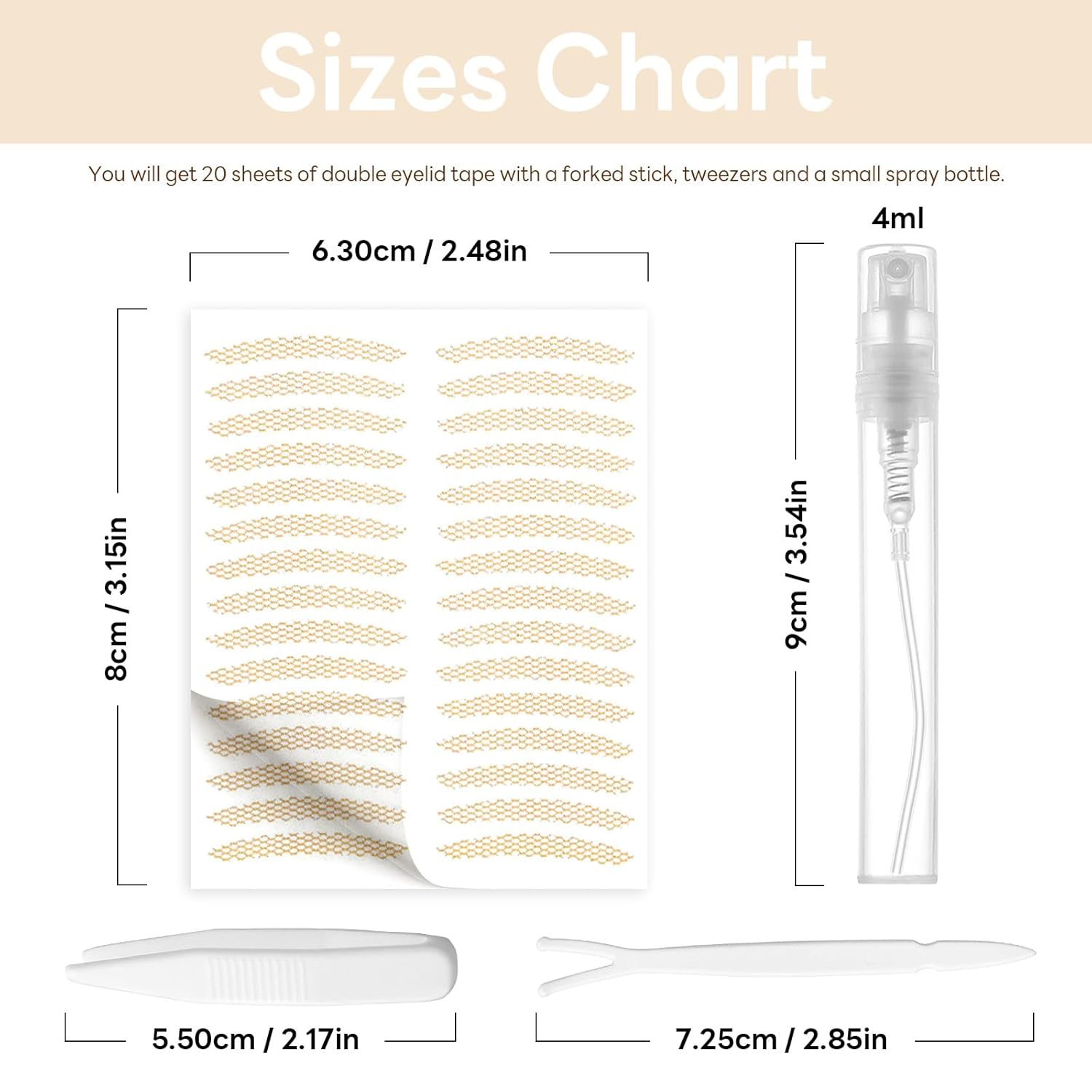 - 🚀Convenient to Use The makeup tape for eyeshadow set with a Y-shaped fork, spray bottle, and tweezers, making it more convenient and quick to use, and can be adjusted and modified at any time. Both first-time and experienced users can easily get started.
