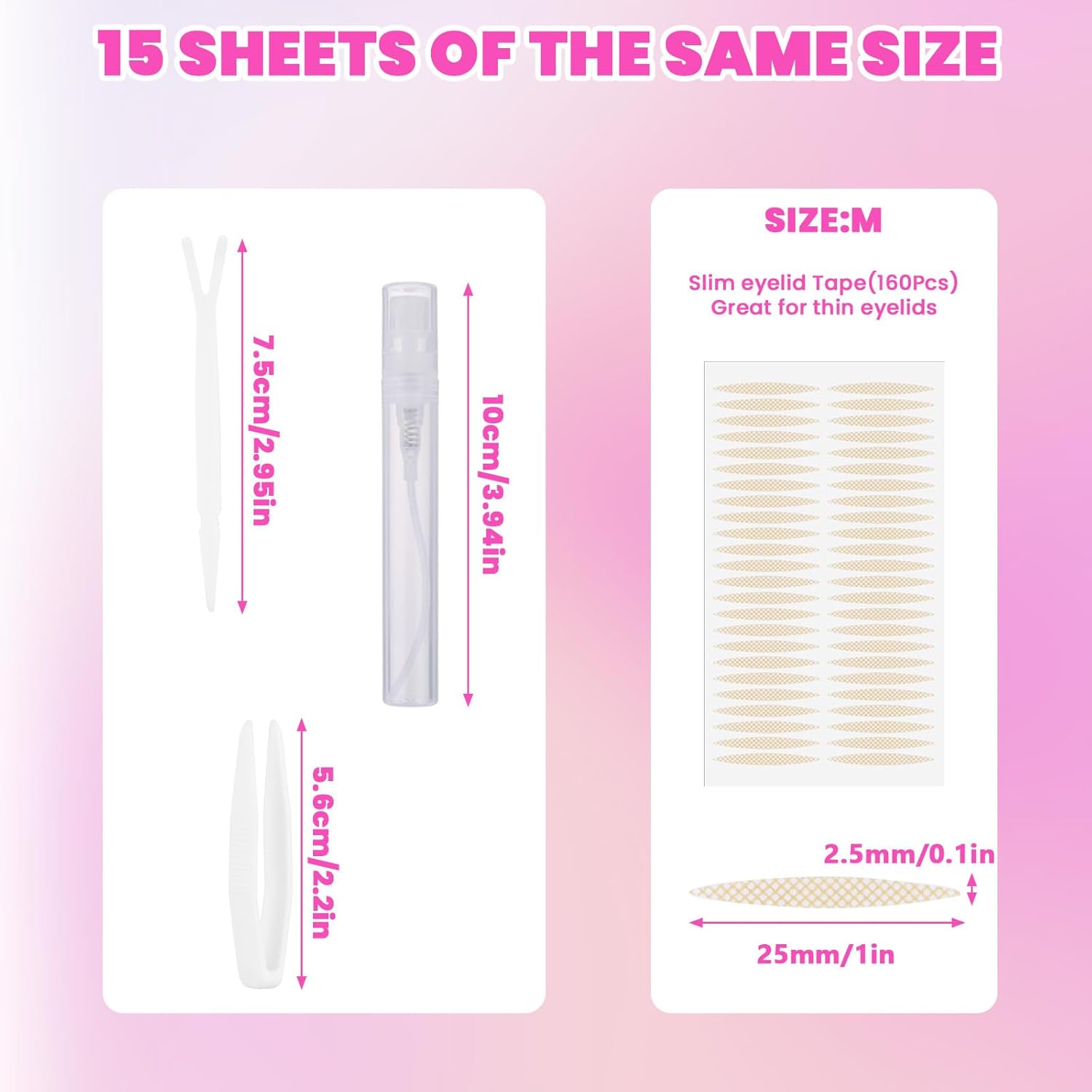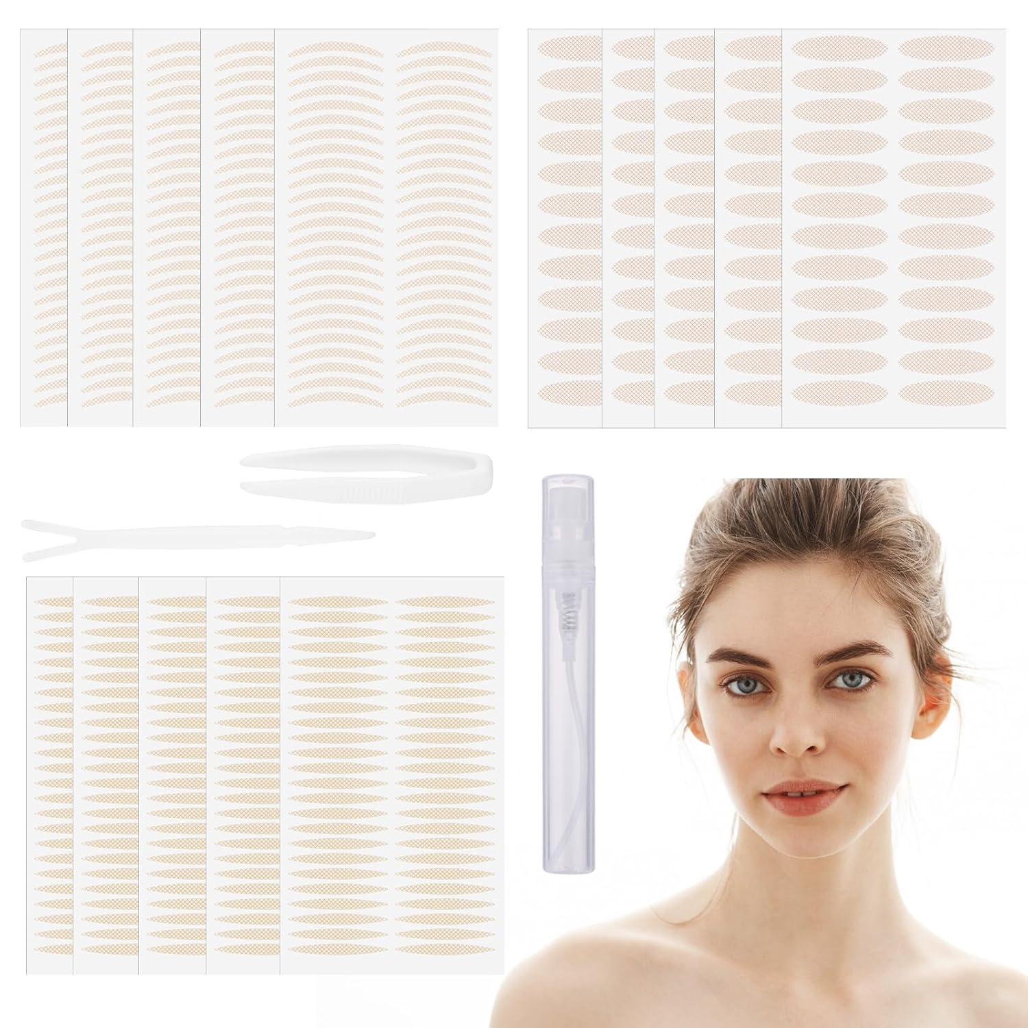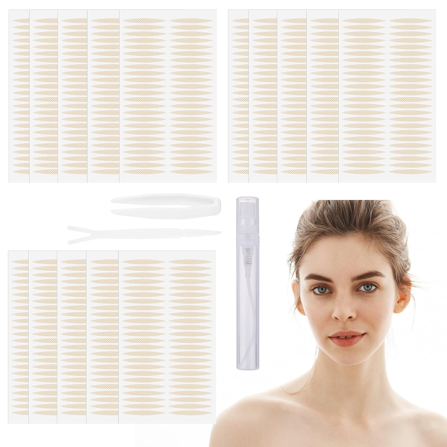 720PCS Invisible Double Eyelid Tape, Waterproof Eyelid Lifter Strips for Drooping Eyelids, Single Eyelids, with Fork Bar, Tweezers and Spray Bottle, No need to spray water, can be used directly