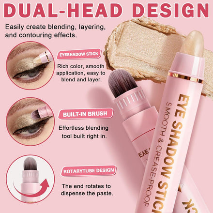 • HOW TO USE: Apply the eyeshadow stick to the eyelids and then easily blend using the built-in brush or your fingertips. Easily create blending, layering, and contouring effects. Crayon eyeshadow sticks allow you to create a sophisticated look anytime, anywhere
