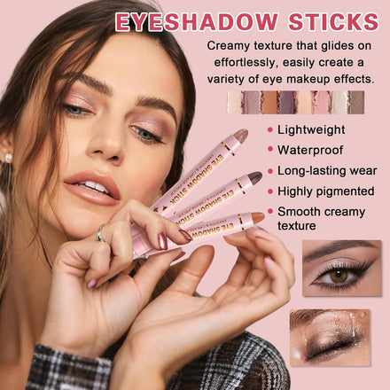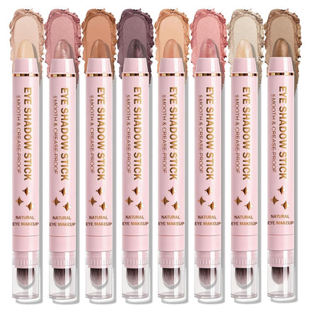• EYESHADOW STICK SET: This eyeshadow stick set contains 8 colors, offering both matte and shimmer finishes. The colors range from light to dark, providing rich and vibrant color for easily creating a variety of stunning eye makeup looks