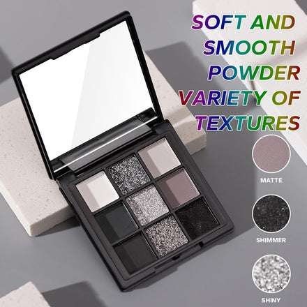 Product Description: Unleash the power of the perfect smokey eye with our 9-Color Smokey Eyeshadow Palette —a must-have for bold, confident, and unforgettable makeup looks. Featuring a dynamic mix of highly pigmented matte, shimmer, and glitter shades , this palette is your ultimate tool for crafting sultry, dramatic, or everyday glam styles with ease. From deep black and charcoal gray to dazzling silver and icy white , each shade is formulated for maximum color payoff and blends effortlessly to create seamless transitions. Whether you’re a makeup enthusiast or a pro artist, this palette delivers versatile, show-stopping looks for any occasion. Ultra-Pigmented & Blendable: The velvety formula ensures smooth application, allowing you to build intensity or blend for soft, diffused effects. Waterproof & Long-Lasting: Resistant to sweat, humidity, and smudging, this eyeshadow stays flawless from day to night. Versatile & Multi-Use: Use it for smokey eyes, cut creases, halo eyes, or even as a highlighter for added dimension. Gentle & Skin-Friendly: Cruelty-free, paraben-free, and lightweight, ensuring comfort and wearability for all skin types. Perfect for special occasions, parties, Halloween makeup, stage performances, or everyday wear , this palette makes an excellent gift for makeup lovers, professionals, and beginners alike. Transform your eye look today!