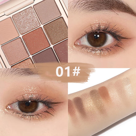1๏ผMatte and Shiny colors: 9 Colors versatile eyeshadow palette, various of gorgeous shimmer and matte colors are available, easy to match your look!