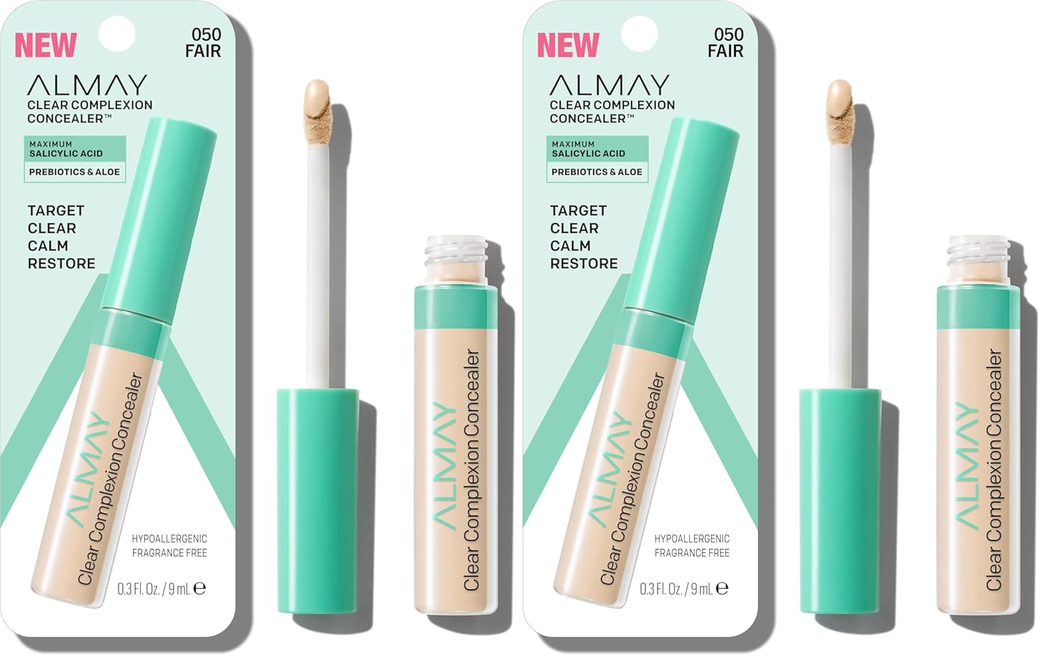 The new and improved hypoallergenic Almay Clear Complexion Concealer™ skin balancing formula works to spot treat acne and support skin’s healthy look. Ideal for acne prone skin types, oily skin, and combination skin, the lightweight, full coverage concealer targets and fights blemishes, leaving skin with a seamless soft matte finish that lasts all day. In addition to a dose of maximum strength 2% salicylic acid that helps treat and prevent future breakouts, this makeup essential is now powered by prebiotics and aloe vera. Why? Prebiotics nourish a healthy skin barrier for a well balanced complexion; soothing aloe vera moisturizes skin, which helps calm signs of irritation. The nondrying, non cakey, non comedogenic (won’t clog pores!) concealer also comes with a redesigned doe foot wand for even better application. And because Almay loves the planet as much as your skin, the cap is made with 29.7% PCR material and the card the concealer is packaged in is made of 100% sustainably sourced FSI paperboard. Formulated without added parabens, phthalates, SLS, mineral oil, DMDM Hydantoin, formaldehydes, Triclosan, and palm oils. Suitable for sensitive skin. As always, hypoallergenic. Dermatologist tested. Clean. Cruelty free. Fragrance free.