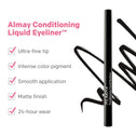 Almay Conditioning Liquid Eyeliner™ is crafted with an ultra fine felt tip to lay down clean, smooth liquid lines without tugging or skipping. Made for novices and pros alike, the highly pigmented pen with a matte finish gives you precise control to easily achieve your favorite liner styles, from a paired-back everyday look to a dramatic cat eye to a graphic wing. Plus, you can wear the quick drying formula throughout the day knowing that it feels lightweight and comfortable on, and is waterproof, fade proof, and smudge resistant. Because we are dedicated to making caring products for your delicate eye area, the eyeliner formula, which is enriched with a lash-conditioning complex, nourishes and hydrates lashes. Available in three intensely pigmented shades that last. Formulated without added parabens, SLS, mineral oil, DMDM Hydantoin, and Triclosan. As always, hypoallergenic. Ophthalmologist tested. Clean. Cruelty free. Fragrance free. Suitable for sensitive eyes.