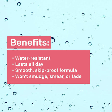 - This water-resistant formula lasts up to 16 hours. The smooth, skip-proof formula won't smudge, smear, or fade, either