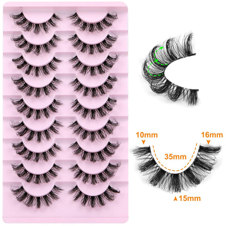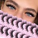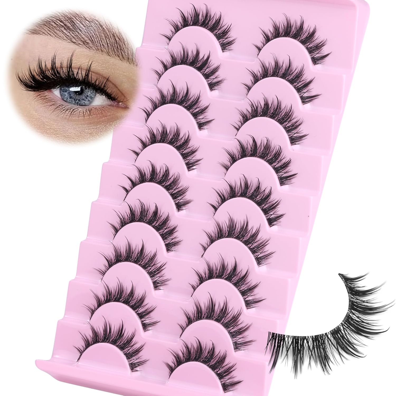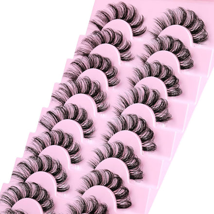 ALPHONSE Russian Lashes Clear Band False Eyelashes Natural Look D-Curly Fake Lashes Russian Strip Faux Mink Eyelashes 9 Pairs Pack