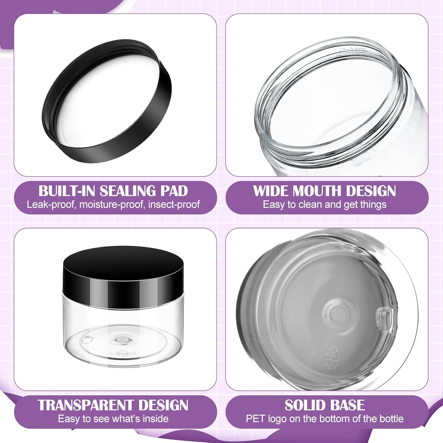 - Suitable Size: the clear plastic container jars are about 1.89 inches/ 48 mm in total height, about 2.8 inches/ 71 mm in diameter, and their capacities are about 4 oz. The size is very suitable for pockets, handbags, backpacks, gym bags, luggage or various kinds of desktop