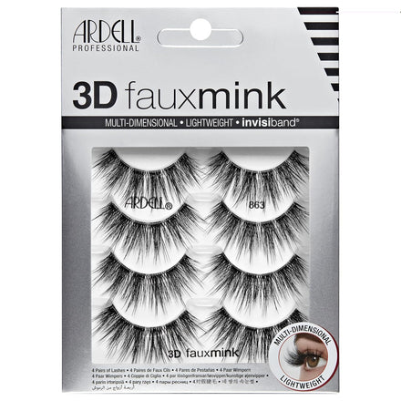 Ardell 3D Faux Mink Lashes 858 - Lightweight False Eyelashes with Invisiband, Reusable Strip Lashes, 4 Pairs