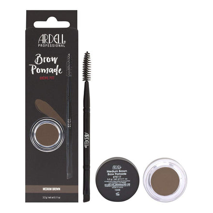Ardell Brow Pomade - Medium Brown, Smudge-Proof Long-Lasting Eyebrow Makeup, with Dual-Ended Precision Brush and Spoolie for Defined and Natural Brows, 1 Pack