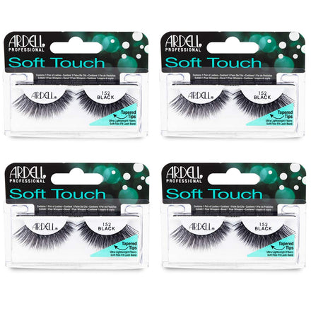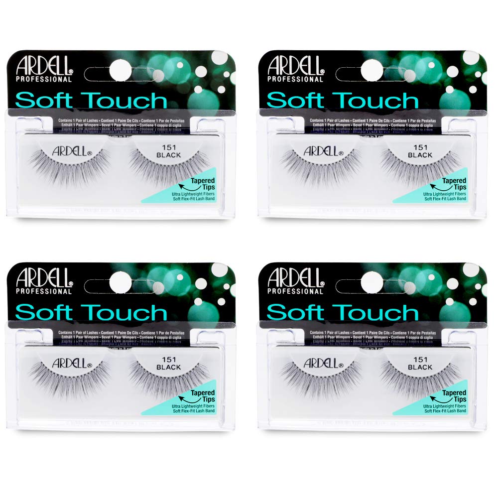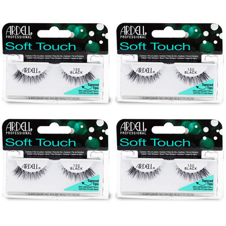- FLARED, SLIGHTLY CRISSCROSSED FAUX LASH STYLE: The 150 Soft Touch Eyelashes from Ardell will provide just the right amount of fibers that are constructed of short length lashes that become slightly longer towards the outer corners. Featuring a strand of slightly crisscrossed lashes, these wispy fake eyelashes are sure to bring compliments your way. They aren’t too thick, though - perfect for the woman opting for a natural, no-makeup look!