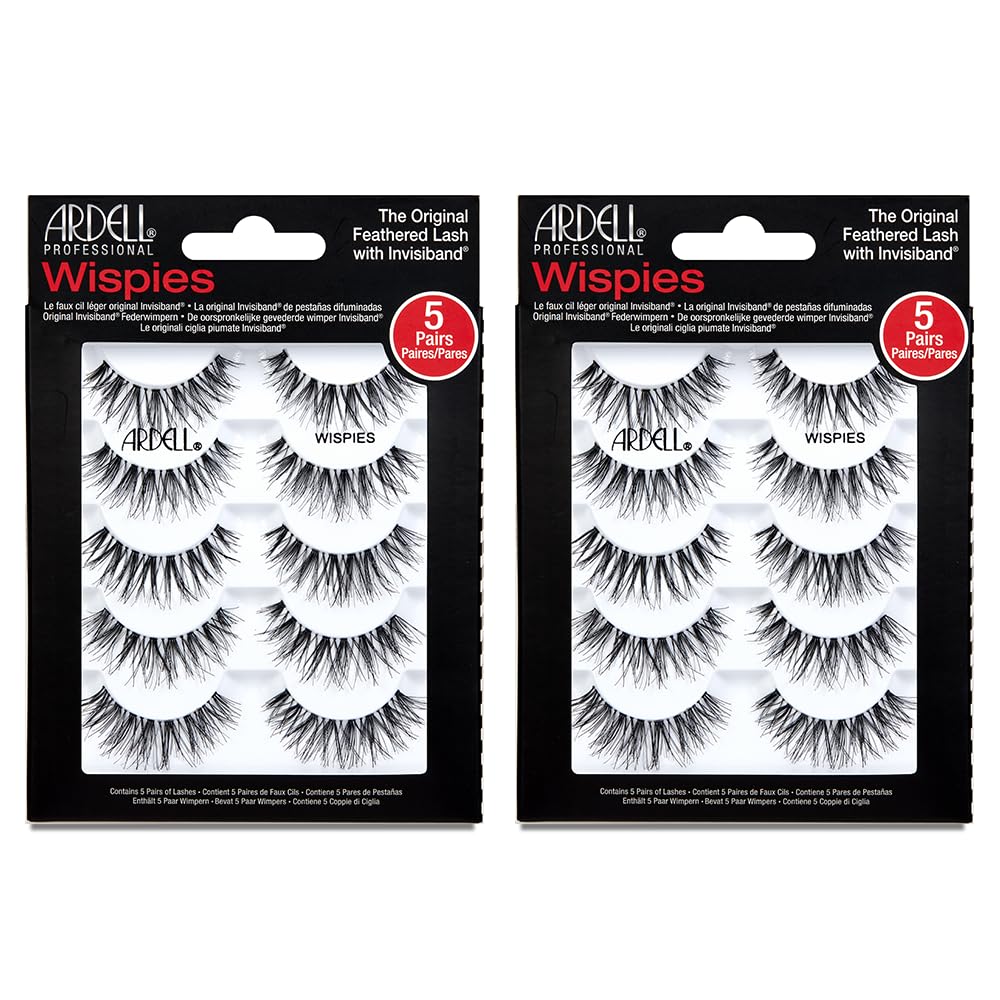 - NO MORE FAKE LASH SHORTAGE: Stay glamorous all day and night with Ardell Wispies False Eyelashes. A cult favorite, these lashes are perfect for parties and attracting attention. Get two packs of 5 pairs each for unbeatable value and endless beauty.