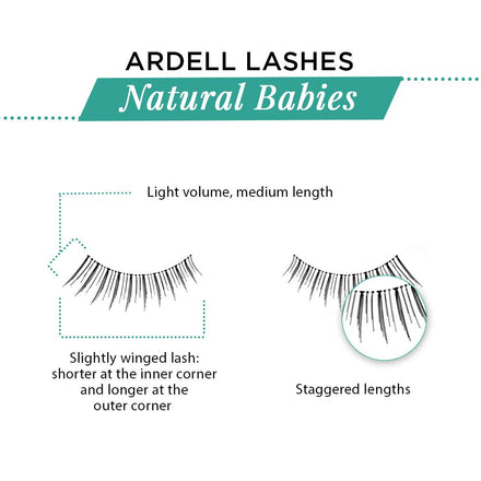 - NATURAL-LOOKING STRIP LASH: 4 pairs of Ardell Natural Lashes Babies Black will offer you lightweight volume and top off different makeup styles. Perfect for those who have small, round and almond-shaped eyes giving subtle, natural enhancement to emphasize your naturally impressive eyes. They aren't too long or dramatic, so they are perfect for times when you just want to add a little extra pop to your eyes. Great for an everyday look!