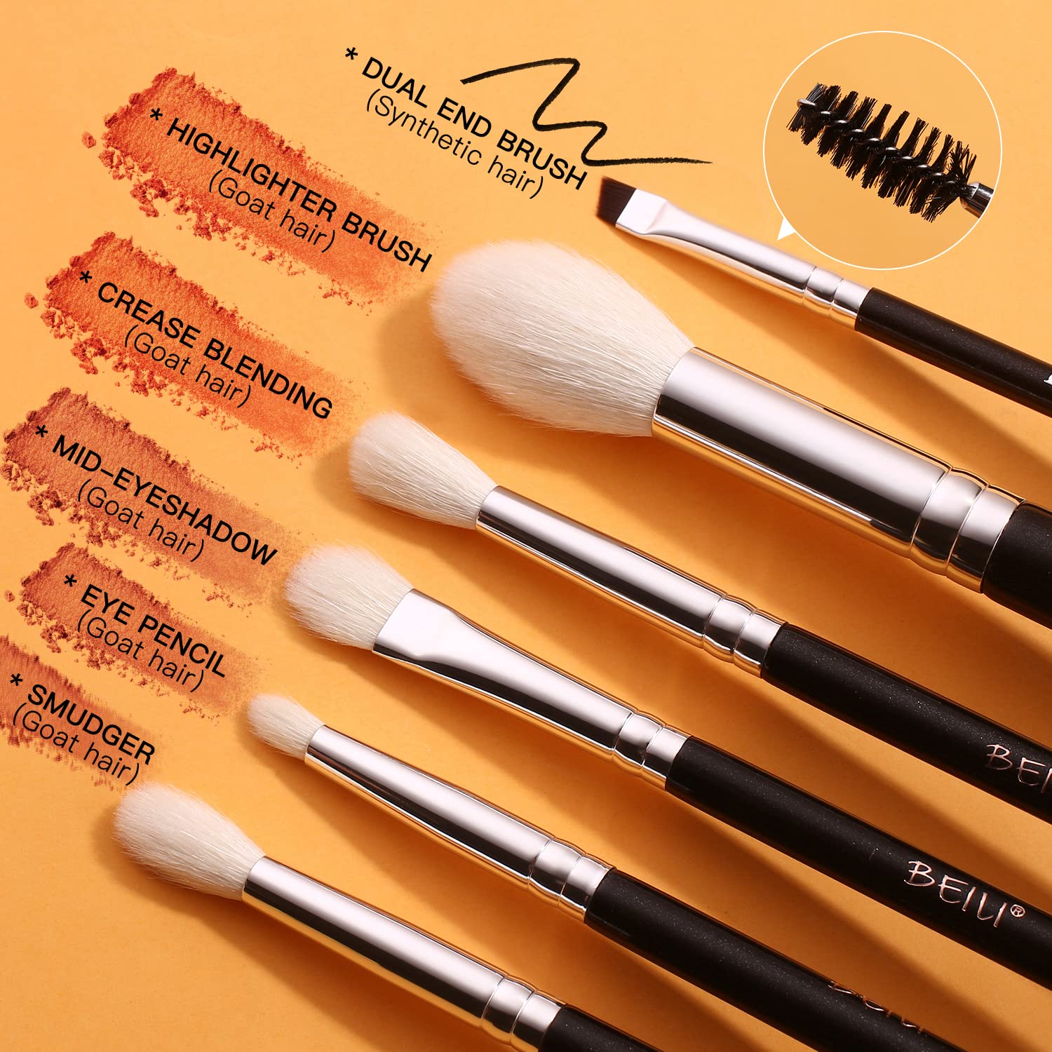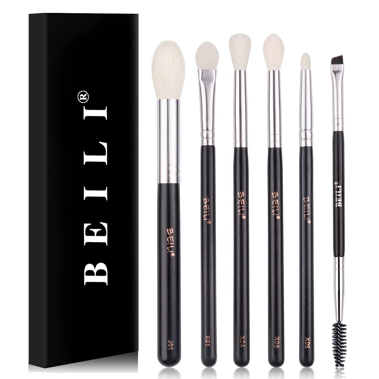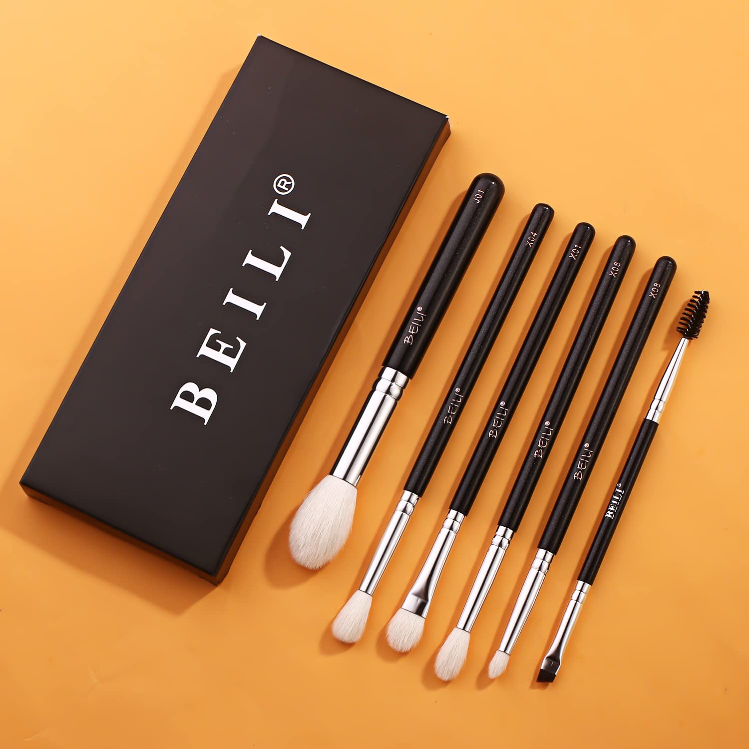 BEILI Eye Makeup Brushes 6pcs Eyeshadow Brushes Natural Goat Professional Makeup Brushes Set for Eyeshadow, Blending, Eyebrow, Highlighter