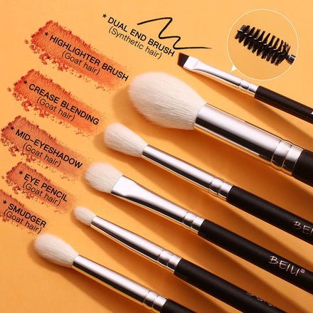 • Professional Eyeshadow Brush Set: Including 6pcs eyeshadow brushes, blending brush, duo eyebrow brush and highlighter brush. Different shapes and sizes of the bristles give you a variety of eye looks.