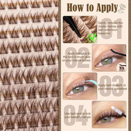 - Flawless Blend with Real Lashes: The understated brown hue lash clusters seamlessly complements most natural lash colors. The tapered feathered ends and thin, brown eyelash clusters band melt invisibly into your existing lashes, creating dimension without harsh lines. No more obvious falsies.