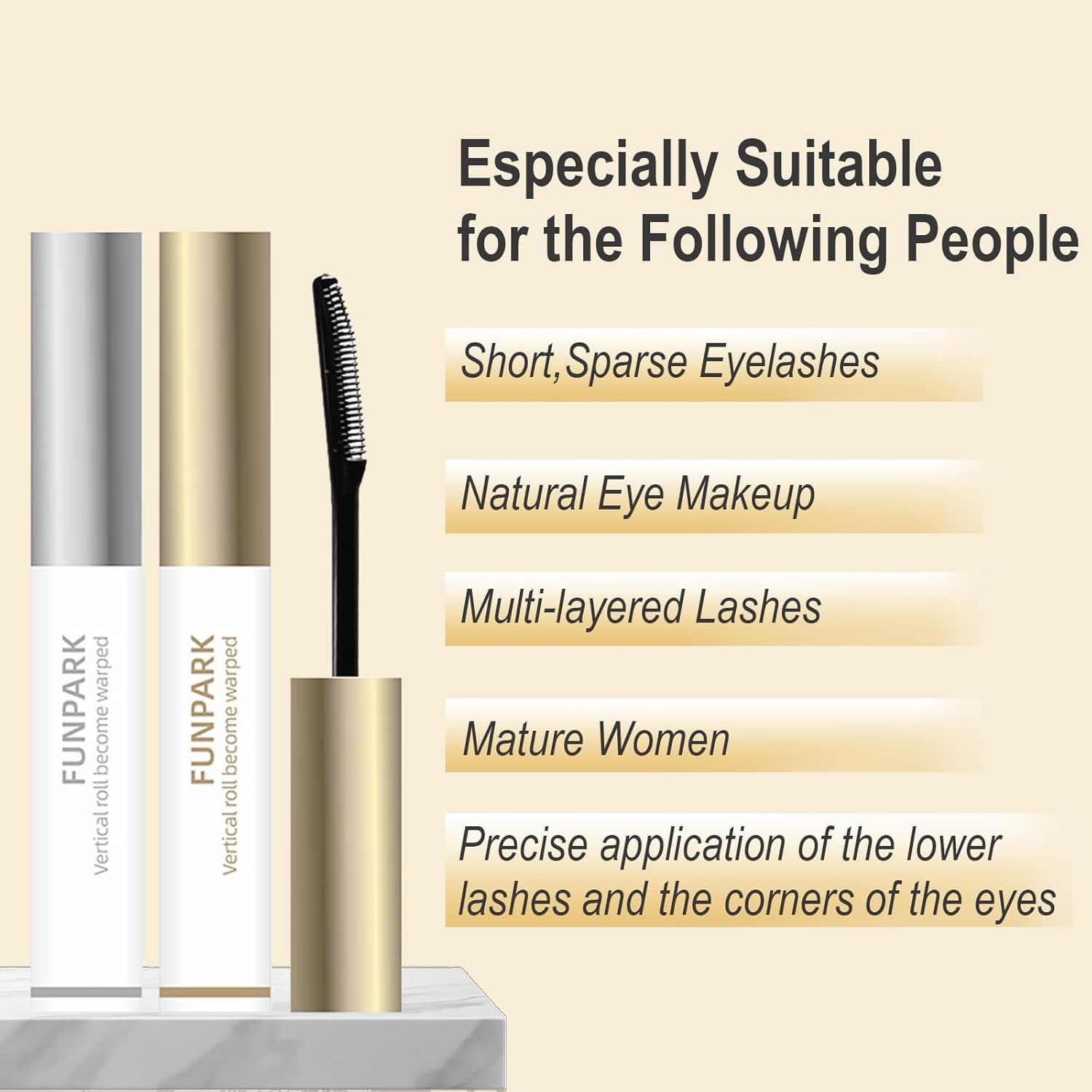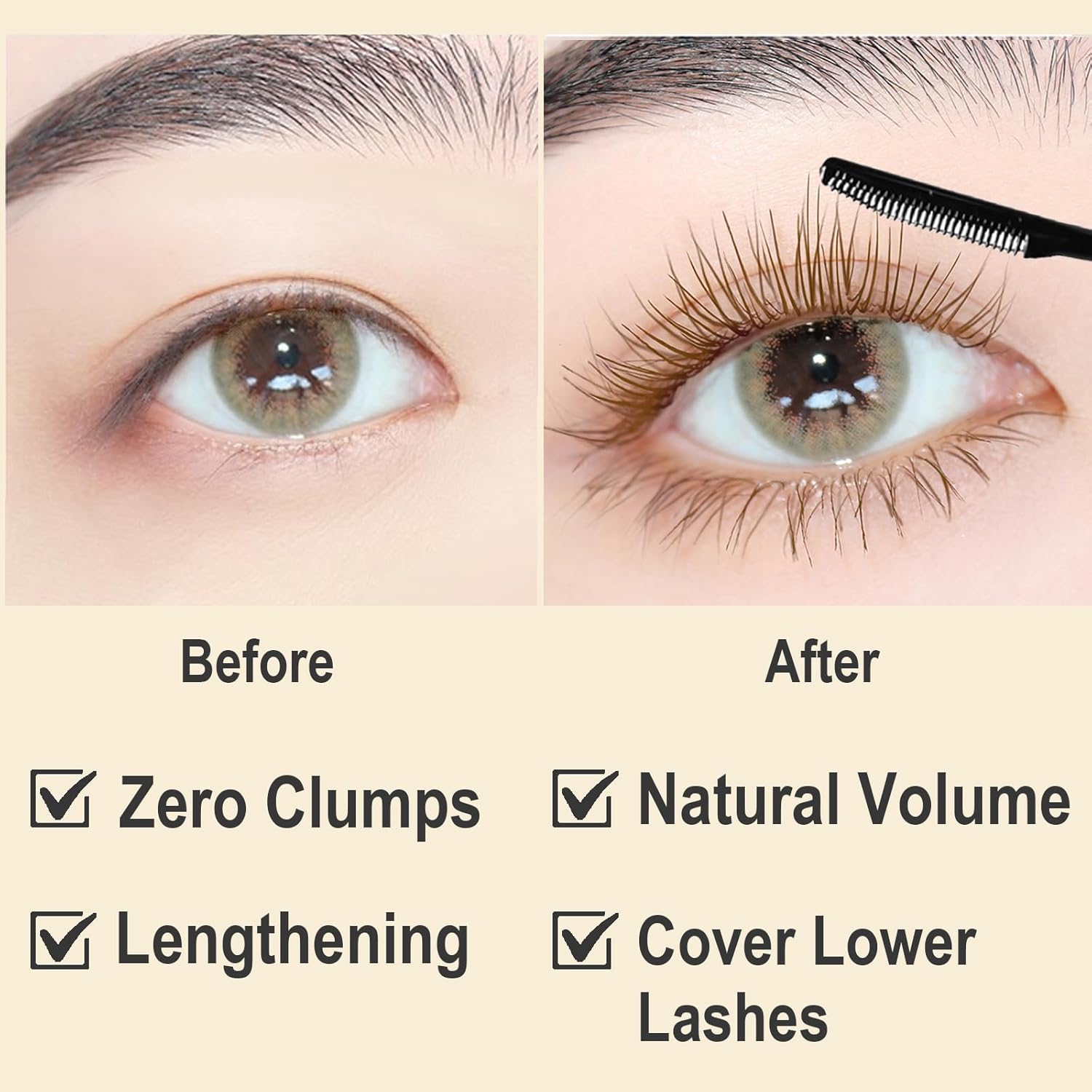Brown Mascara Primer for Fine Short Lash & Older Women, Lengthening | Comb Brush Separates Each Lash No Clumps Lightweight Quick-Dry Formula, Waterproof, Lower Bottom Lashes Mascara