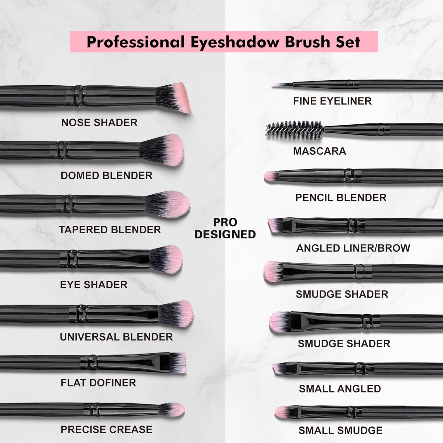 - 【Labeled Eyeshadow Brush Set】This 15-piece Labeled Eyeshadow Brush Set stands out with clear function-labeling on each brush.Whether you're a newbie or a pro streamlining your routine,the labels make identifying the right tool for every eye-makeup step a breeze.