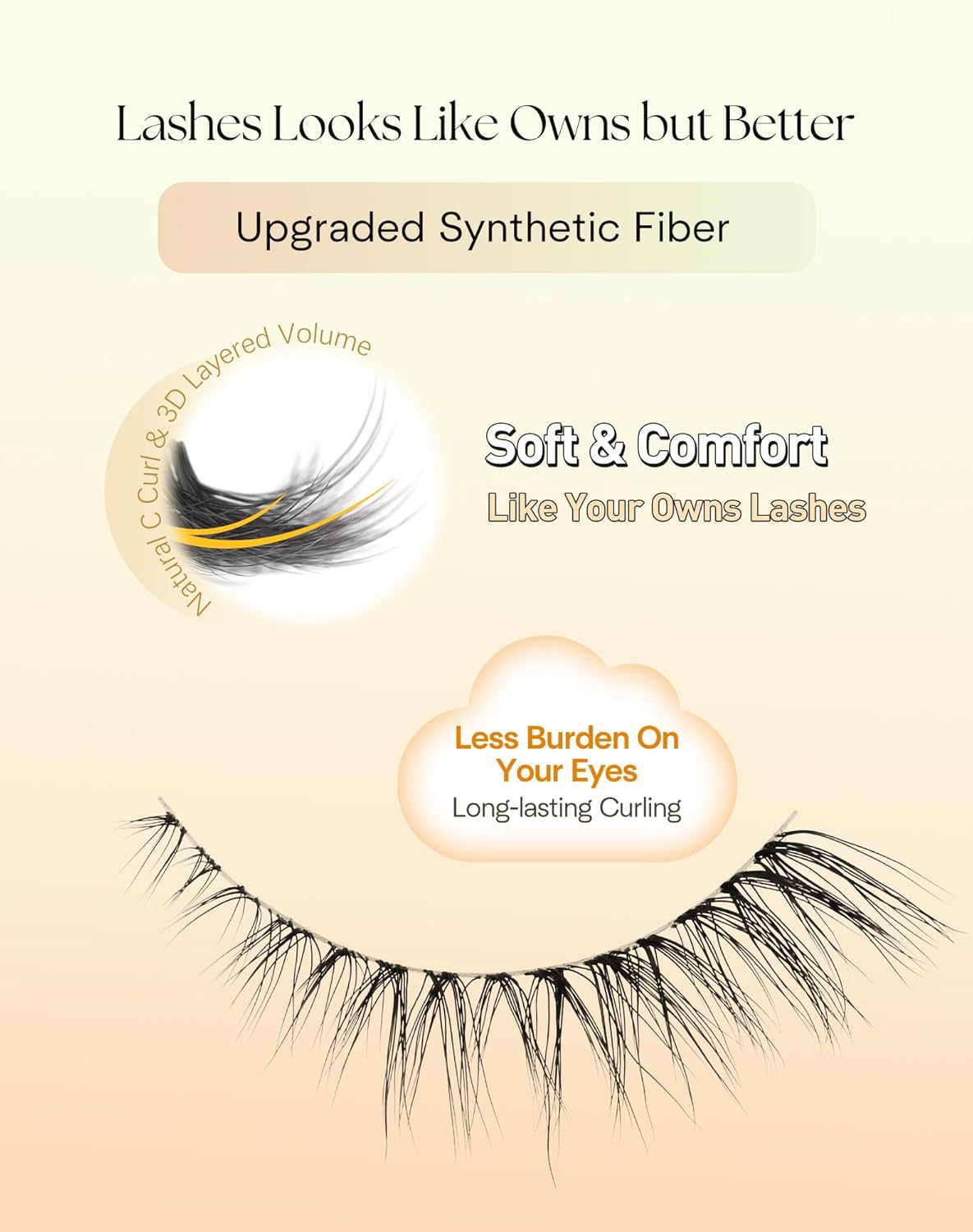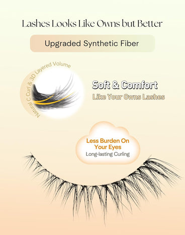 • Upgraded Material for Luxurious Eye Lashes Look: Our false lashes use soft synthetic fiber, offering a silk-like touch with featherlight comfort. The upgraded tapered technology creates a natural eyelashes effect with refined elegance