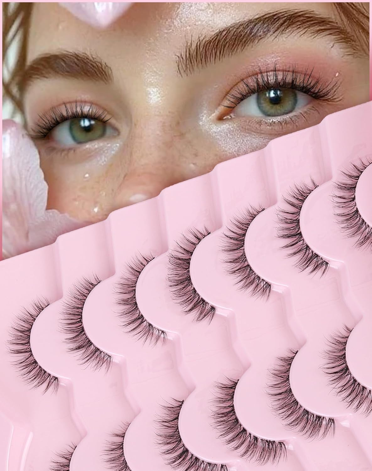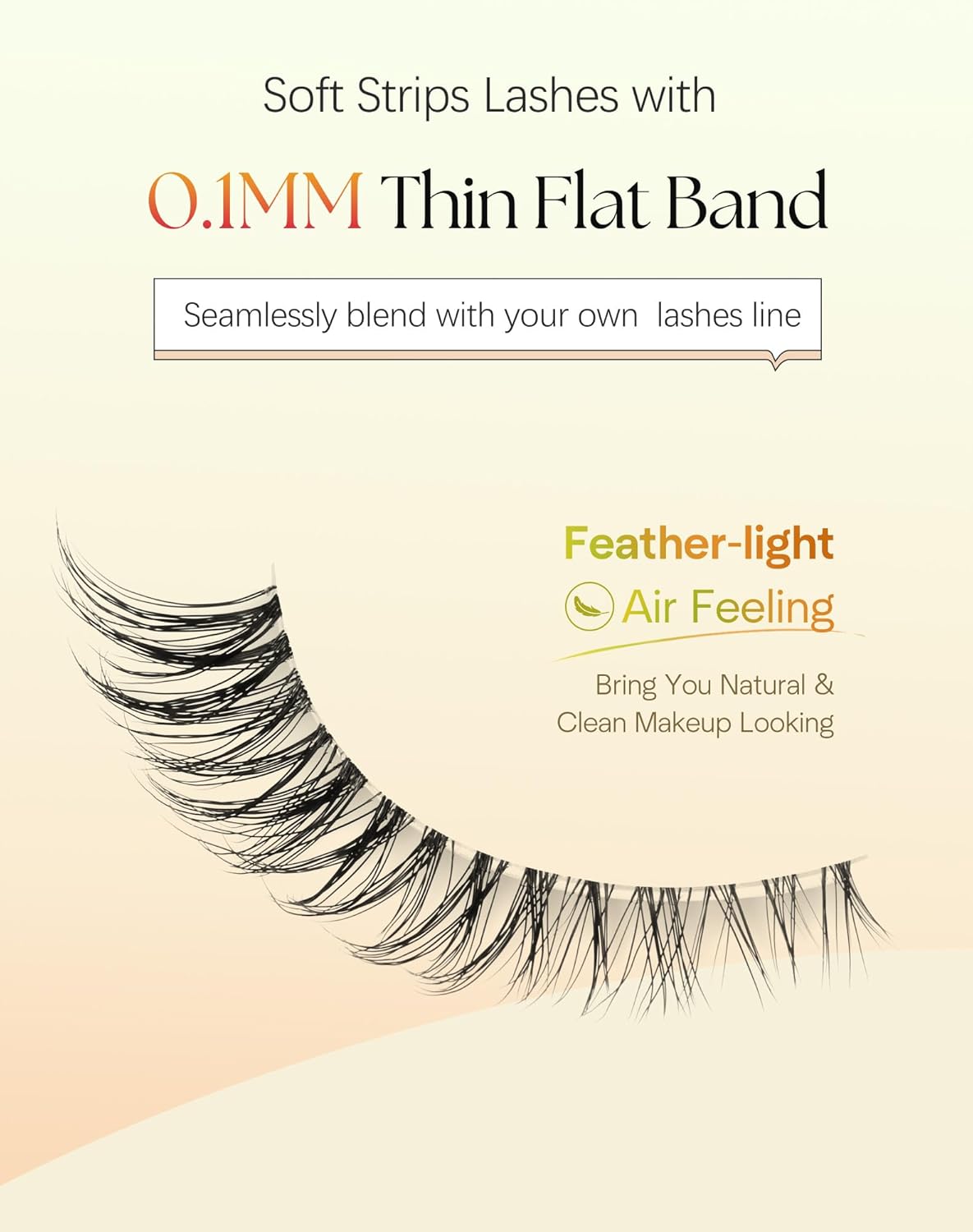 • Eyelashes with Ultra-Thin Flat Band: Featuring 0.1mm ultra-thin flat band, feather-weight, airy feeling. Our wispy lashes blend flawlessly with your natural lashes line for a seamless, undetectable look. Less pressure on eyes and keep all-day comfort