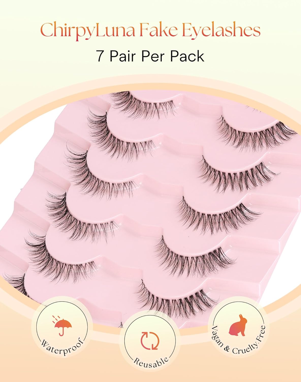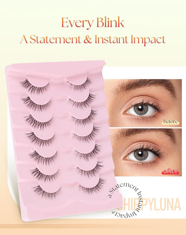 Cat Eye Lashes Wispy 12MM Eyelashes Natural Look C Curl Lash Strips with 0.1MM Clear Band 3D Volume False Lashes Pack ChirpyLuna Fake Eyelashes 7 Pair