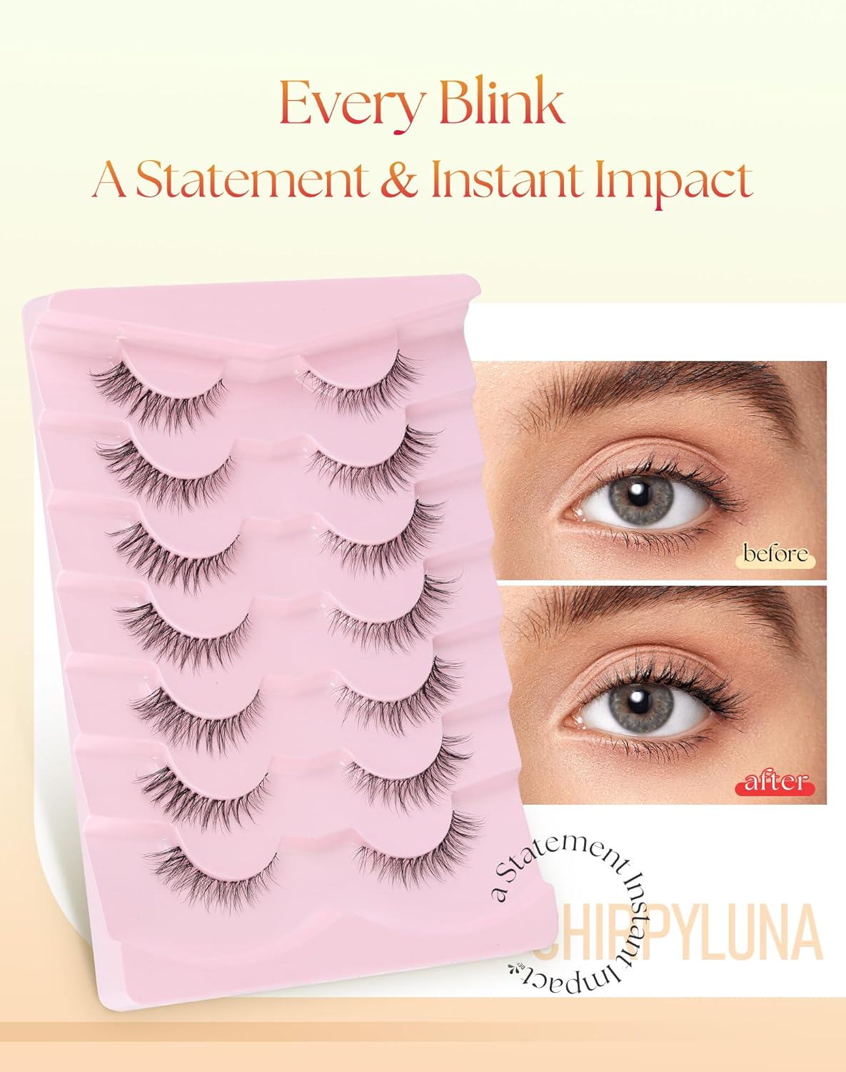 ChirpyLuna is not just a lashes brand. It's an invitation to express your most playful and luminous self. Born from the belief that beauty should be both joyful and transformative, we blend innovative formulas with a touch of magic to create lashes that are nothing short of extraordinary! Short Cat Eyelashes Wispy Natural Cat Eye Lashes "Naked " Natural Lashes Natural Lashes Cat Eye Half Lashes Cat Eye Natural Half Lashes