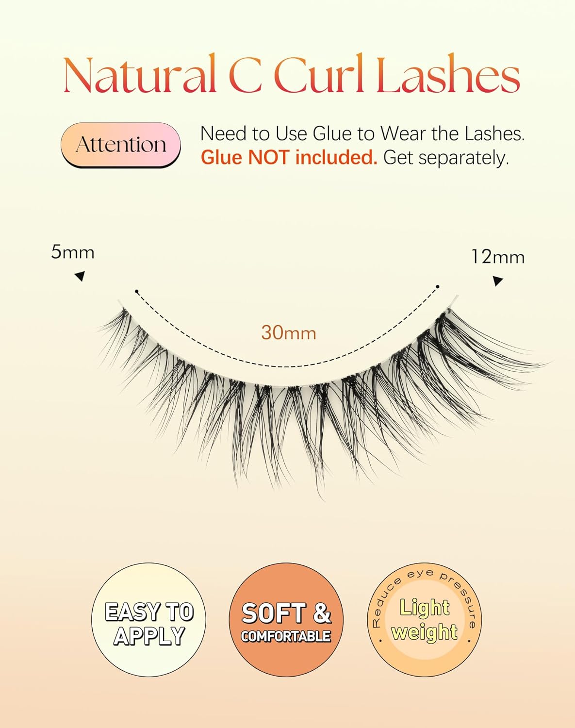 • C Curl Lashes Natural: Our cat eye lashes (Length: 5mm - 12MM) will add a touch of elegance & lift, elongating & lifting your eyes for a captivating yet understated eyelashes effect. Ideal for daily wear, work, or travel