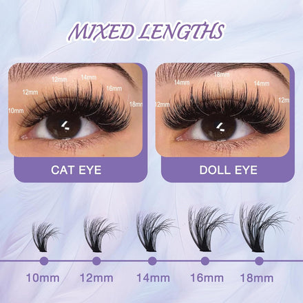 • 【270PCS Volume Lashes Clusters】The individual eyelashes contains 270 individual cluster eyelashes, offering a mix of lengths from 10mm to 18mm. This variety of individual lashes allows for natural-looking gradients and the ability to tailor the d curl lashes cluster to your specific style preferences.