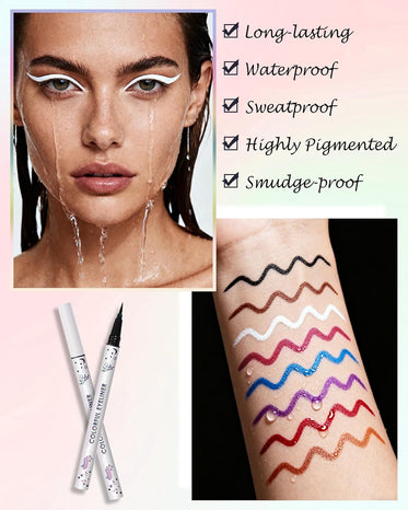- Rainbow Matte Liquid Eyeliner - A professional set of 8 highly pigmented matte shades that apply smoothly in just one stroke. Create bold, artistic daytime looks or charming evening makeup with these rich, blend-able colors. Designed for versatility and high-impact wear, it’s perfect for expressing your unique style in any setting.