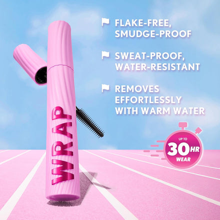 Go the distance with the high-performance COVERGIRL Eye Enhancer Wrap Tubing Mascara. Get a lash extension effect that is clump-free, flake-free and smudge-proof for up to 30 hours. Ultra-stretch, lightweight tubes wrap lashes for instant definition, extended length and lift. Formula is sweat- and waterproof yet removes effortlessly—it rolls off in tubes with warm water (not hot!). Available in 3 eye-enhancing colors: Max Motion Black (for bold, brighter looking eyes), Espresso Energy (for natural, softer looking eyes), Midnight Stride (for brighter, wide awake looking eyes) Based on a consumer study of 115 people: • 97% agree lasts all day • 90% agree instantly lengthens lashes • 90% agree stays flake-free all day • 90% agree provides instant definition • 89% agree stays smudge-proof all day