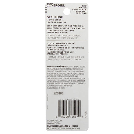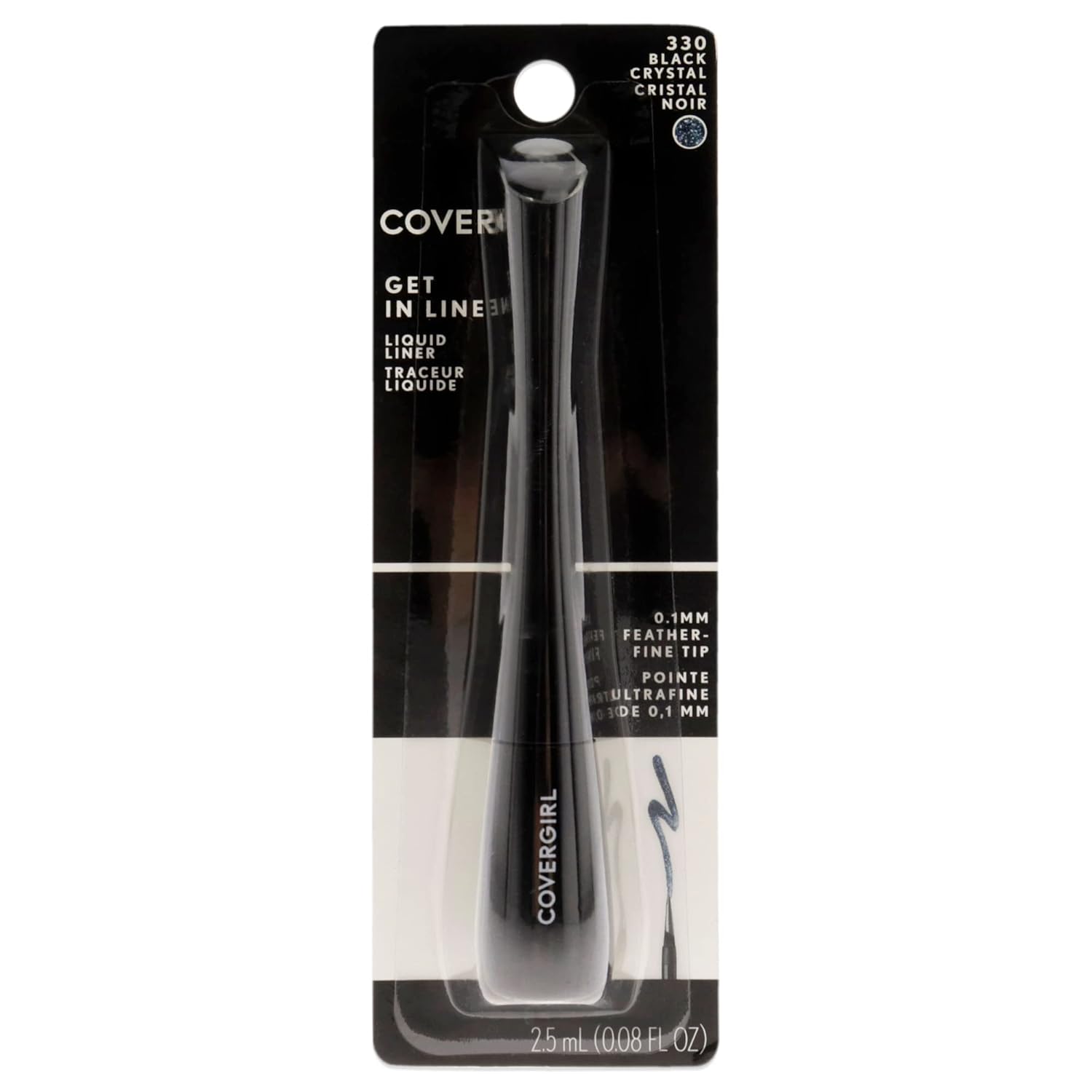 COVERGIRL Get In Line Liquid Eyeliner, Black Crystal, Long Lasting, 0.08 Ounces, Feather-Fine Tip, Contour-Grip Handle, Quick-Dry Liquid Eyeliner, Removes Easily