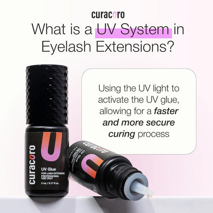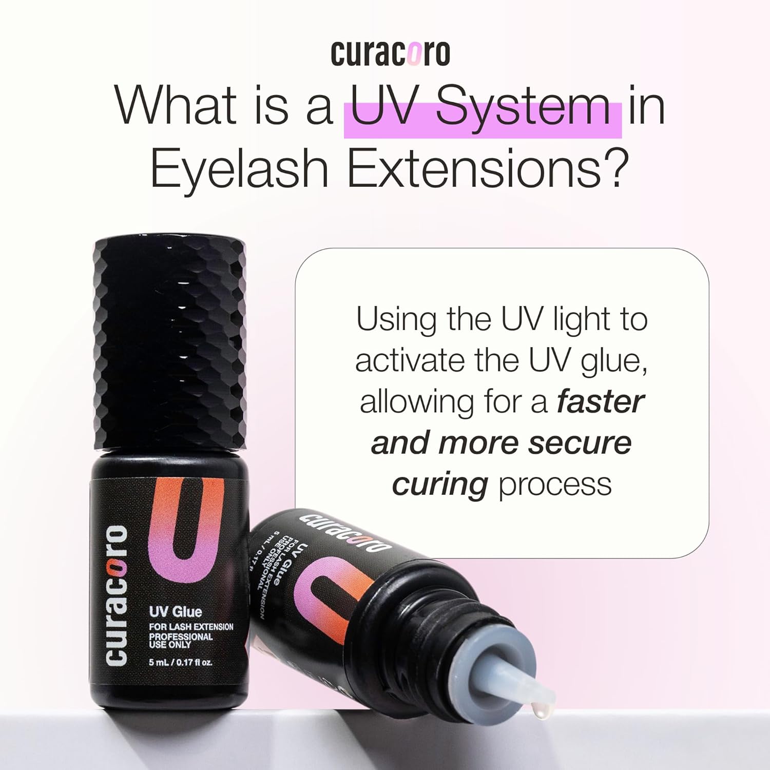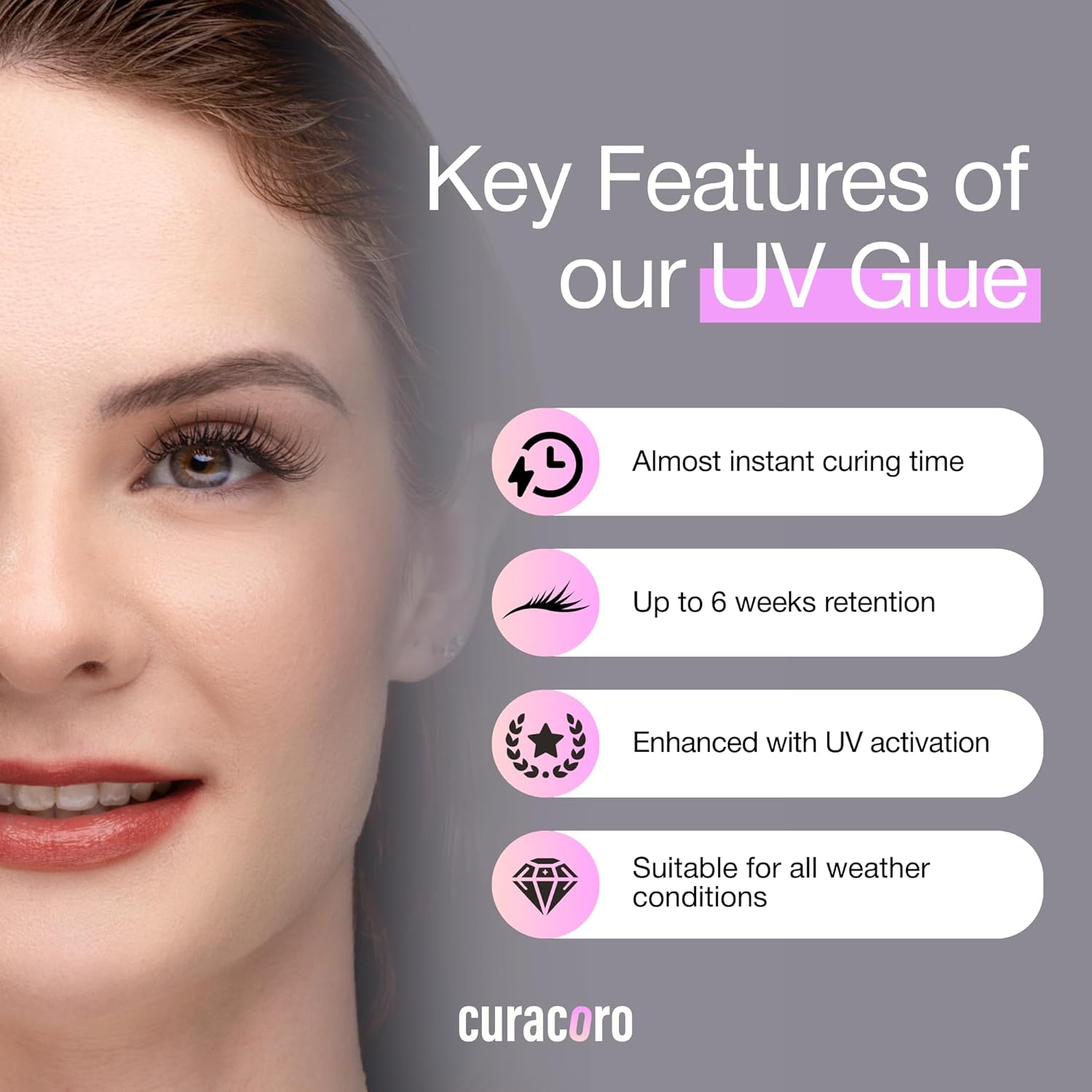 Curacoro UV Eyelash Glue for Professional - Clear UV Light Adhesive for Lash Extensions, 0.5 Sec Fast Drying, Extra Strong Hold Up to 6 Weeks Retention