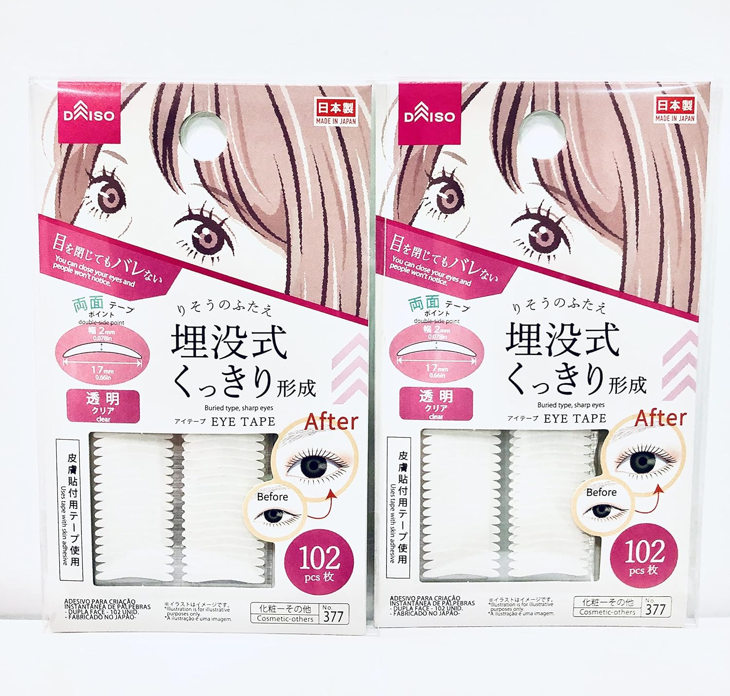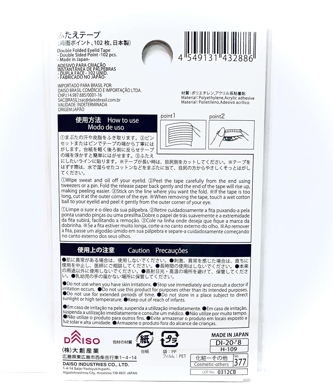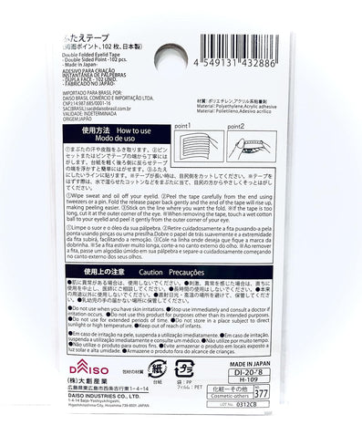 DAISO JAPAN,Double Folded Eyelid Tape | 102 pcs | Double Sided Point (Set of 2) ・Made in Japan ・Double folded eyelid tape - Double Sided Point ・Double-side point - 102pcs LxW0.66x0.078in ・Material: Polyethylene ,Acrylic adhesive ・Adheres and matches your skin / Buried type, Sharp eyes ・Clear